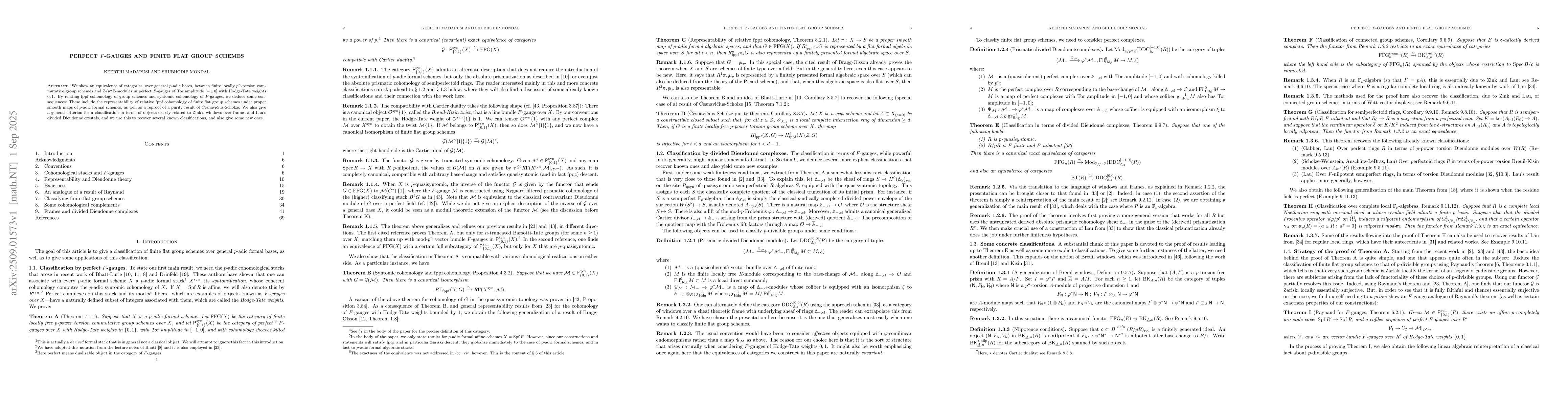 We show an equivalence of categories, over general $p$-adic bases, between finite locally $p^n$-torsion commutative group schemes and $\Int/p^n\Int$-modules in perfect $F$-gauges of Tor amplitude $[-1,0]$ with Hodge-Tate weights $0,1$. By relating fppf cohomology of group schemes and syntomic cohomology of $F$-gauges, we deduce some consequences: These include the representability of relative fppf cohomology of finite flat group schemes under proper smooth maps of $p$-adic formal schemes, as well as a reproof of a purity result of \v{C}esnavi\v{c}ius-Scholze. We also give a general criterion for a classification in terms of objects closely related to Zink's windows over frames and Lau's divided Dieudonn\'e crystals, and we use this to recover several known classifications, and also give some new ones.