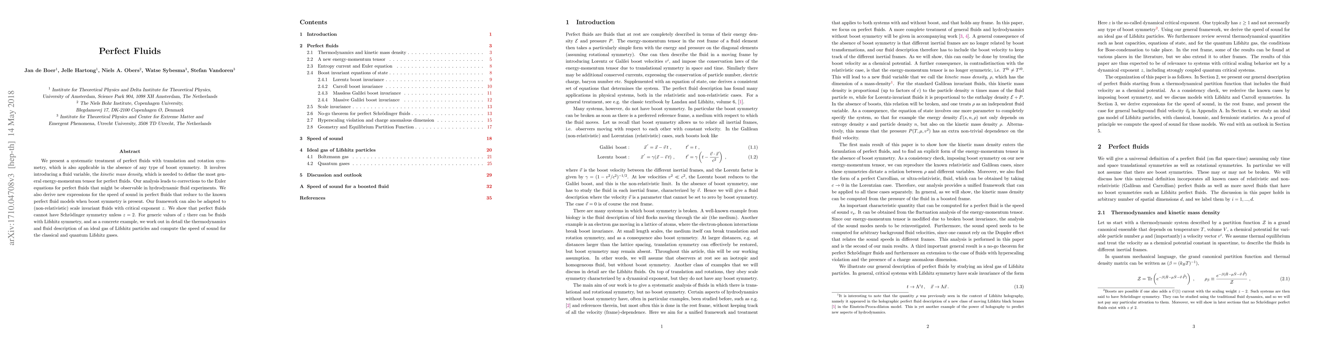 This paper introduces a new theory for perfect fluids with translation and rotation symmetry, defining a kinetic mass density to generalize the energy-momentum tensor. It proposes corrections to Euler equations and new expressions for the speed of sound, applicable even without boost symmetry, and explores implications for Lifshitz and Schrödinger symmetries.