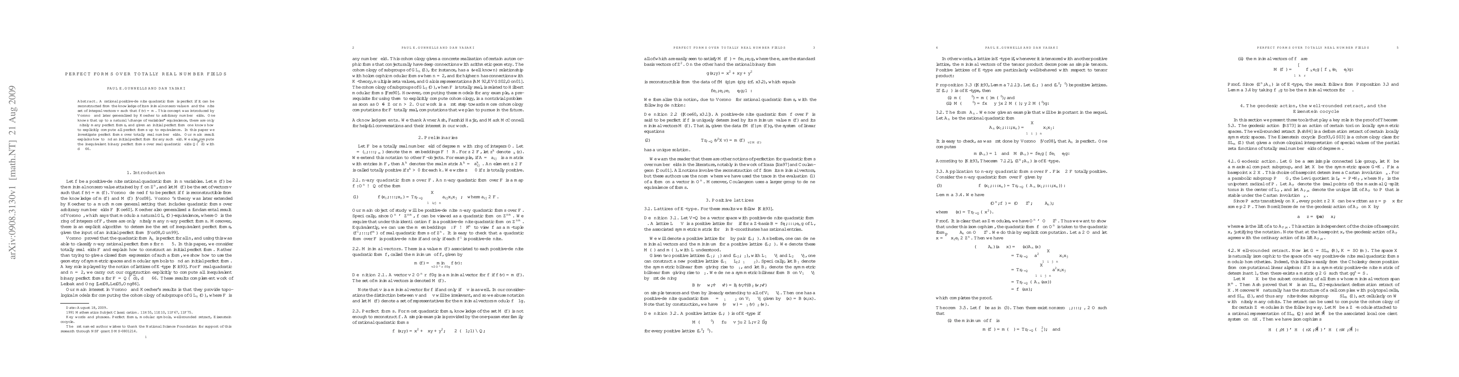 This paper explores perfect forms—rational positive-definite quadratic forms reconstructible from their minimal nonzero value and a set of integral vectors—over totally real number fields. The main result provides a method to find an initial perfect form for any such field, and it computes all inequivalent binary perfect forms for real quadratic fields with discriminants up to 66.