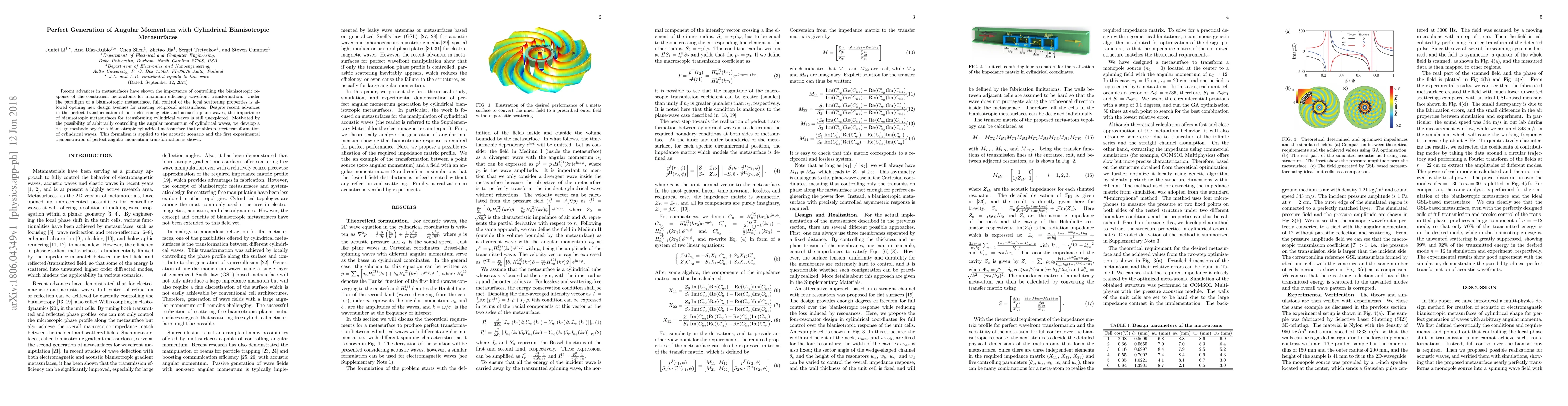This paper proposes a design methodology for bianisotropic cylindrical metasurfaces that allows perfect transformation of cylindrical waves, demonstrating the ability to control angular momentum. The first experimental proof of this concept is shown in the acoustic scenario.
