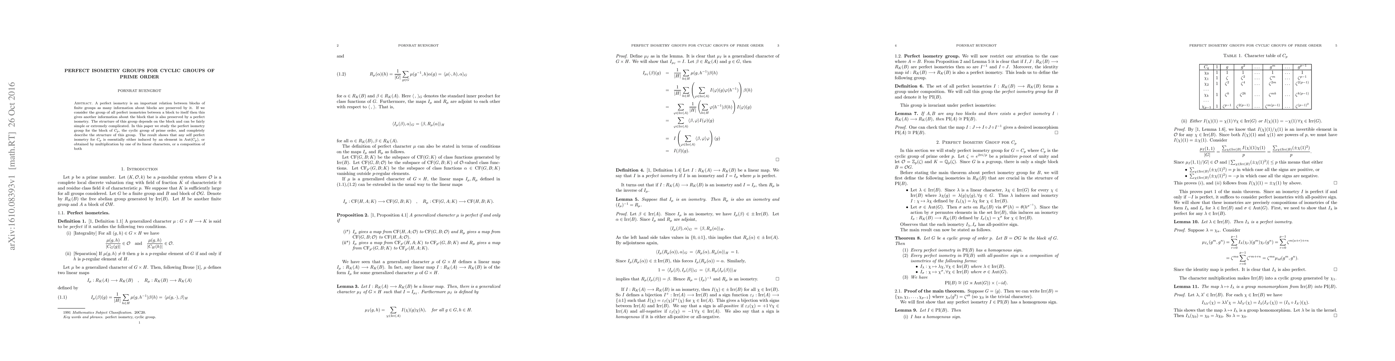 A perfect isometry is an important relation between blocks of finite groups as many information about blocks are preserved by it. If we consider the group of all perfect isometries between a block to itself then this gives another information about the block that is also preserved by a perfect isometry. The structure of this group depends on the block and can be fairly simple or extremely complicated. In this paper we study the perfect isometry group for the block of $C_p$, the cyclic group of prime order, and completely describe the structure of this group. The result shows that any self perfect isometry for $C_p$ is essentially either induced by an element in $\mbox{Aut}(C_p)$, or obtained by multiplication by one of its linear characters, or a composition of both.