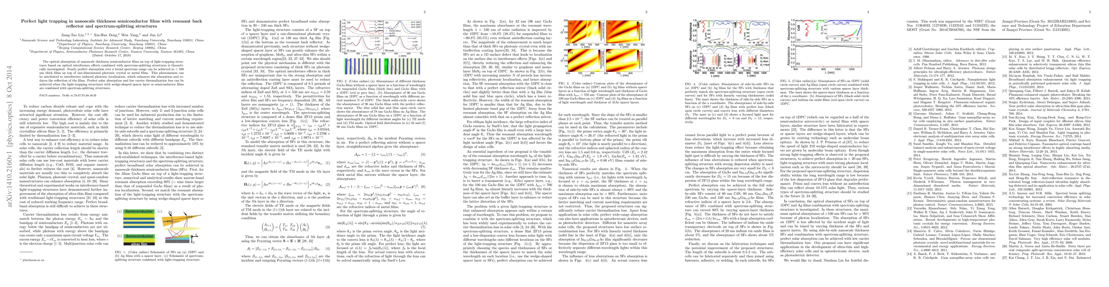 This paper investigates the theoretical basis for nearly perfect absorption in nanoscale semiconductor films using optical interference and spectrum-splitting structures. The study demonstrates that <100 nm thick films can achieve near-perfect absorption over a broad spectrum when combined with resonant back reflectors and photonic localization effects.