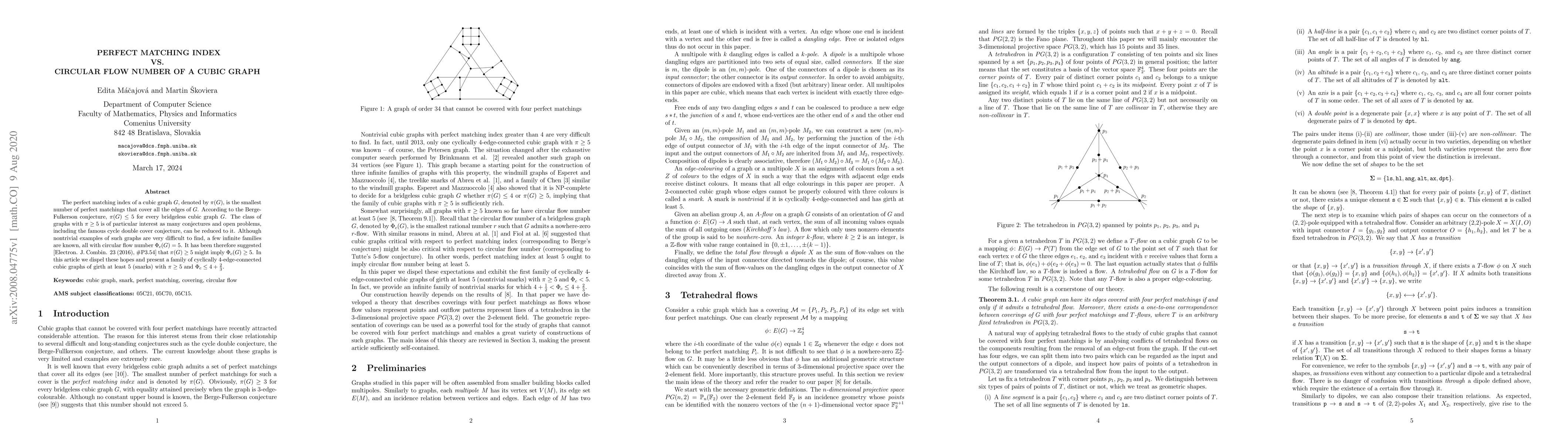 This paper disproves the conjecture that a cubic graph with a perfect matching index of at least 5 must have a circular flow number of at least 5, presenting a family of snarks where $\pi(G) \ge 5$ but $\Phi_c(G) \le 4 + \frac{2}{3}$.