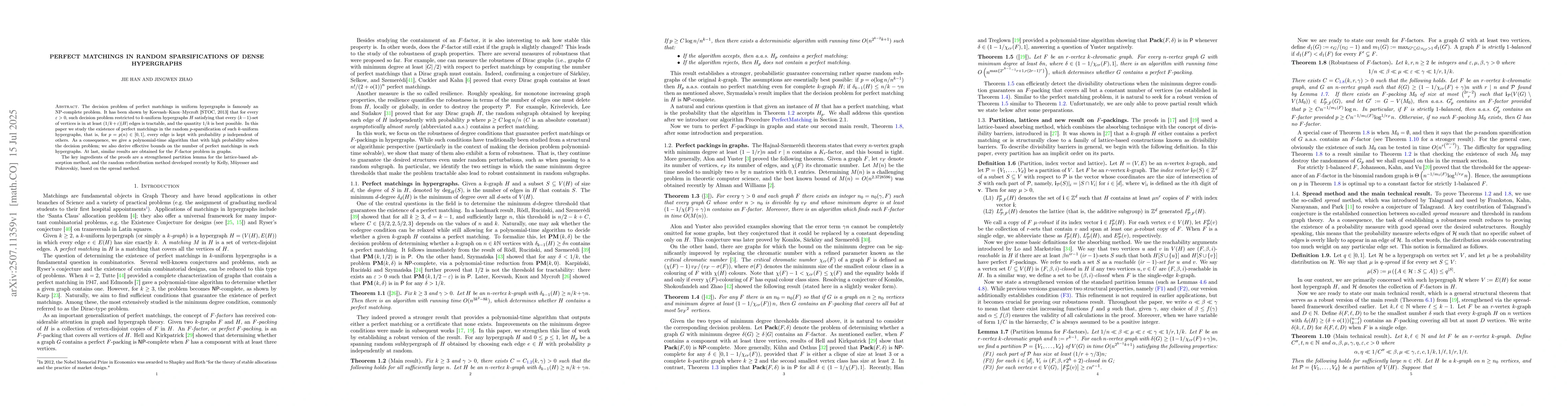 The decision problem of perfect matchings in uniform hypergraphs is famously an NP-complete problem. It has been shown by Keevash--Knox--Mycroft [STOC, 2013] that for every $\varepsilon>0$, such decision problem restricted to $k$-uniform hypergraphs $H$ satisfying that every $(k-1)$-set of vertices is in at least $(1/k+\varepsilon)|H|$ edges is tractable, and the quantity $1/k$ is best possible. In this paper we study the existence of perfect matchings in the random $p$-sparsification of such $k$-uniform hypergraphs, that is, for $p=p(n)\in [0,1]$, every edge is kept with probability $p$ independent of others. As a consequence, we give a polynomial-time algorithm that with high probability solves the decision problem; we also derive effective bounds on the number of perfect matchings in such hypergraphs. At last, similar results are obtained for the $F$-factor problem in graphs. The key ingredients of the proofs are a strengthened partition lemma for the lattice-based absorption method, and the random redistribution method developed recently by Kelly, M\"uyesser and Pokrovskiy, based on the spread method.