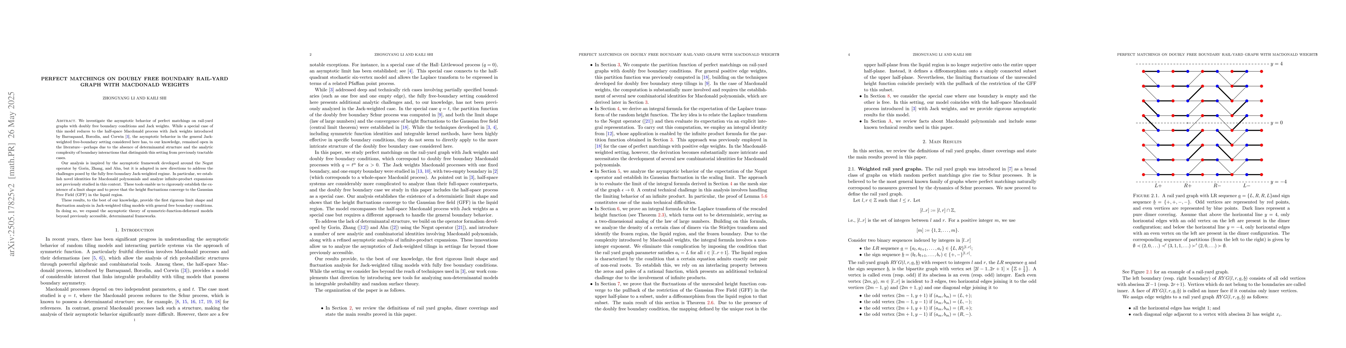 Researchers investigated perfect matchings on rail-yard graphs with doubly free boundary conditions and Jack weights, establishing a limit shape and proving that height fluctuations converge to the Gaussian Free Field in the liquid region.