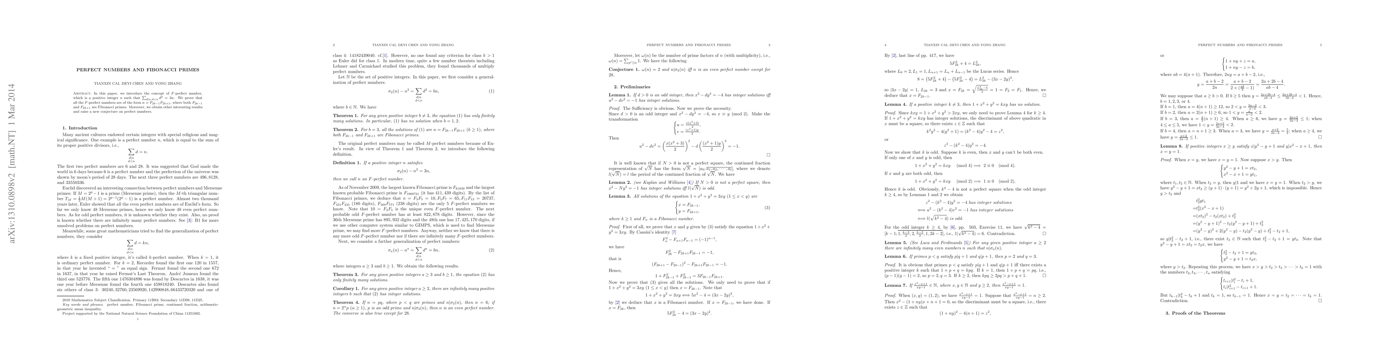 This paper introduces $F$-perfect numbers, defined by $\sum_{d|n,d<n}d^2=3n$, proving they are of the form $n=F_{2k-1}F_{2k+1}$ with $F_{2k-1}$ and $F_{2k+1}$ being Fibonacci primes, and proposes a new conjecture on perfect numbers.