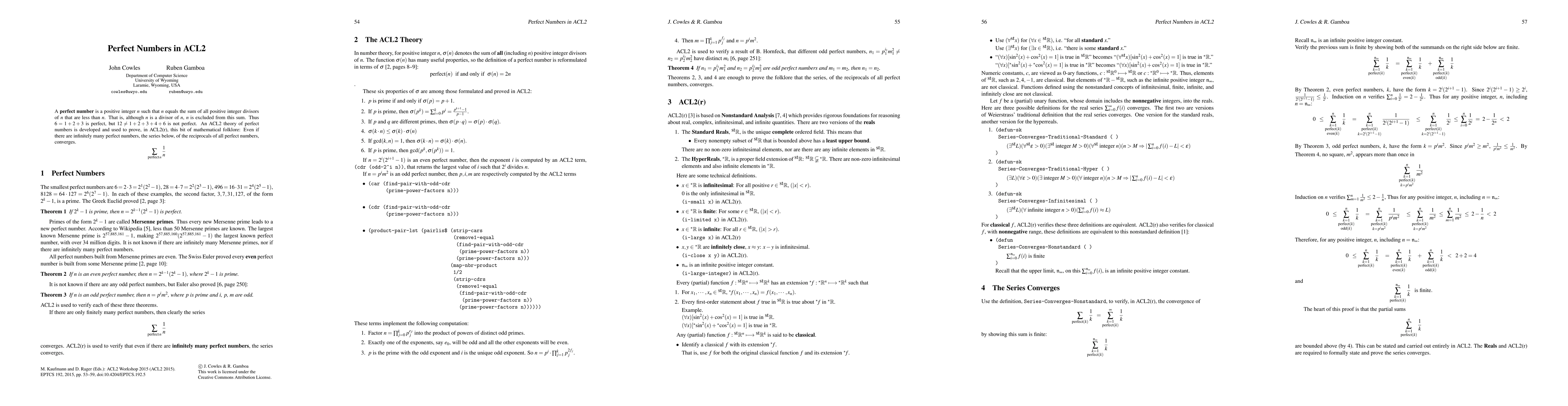 The research demonstrates the use of ACL2(r) to prove results in number theory and verifies the convergence of the series of reciprocals of all perfect numbers.