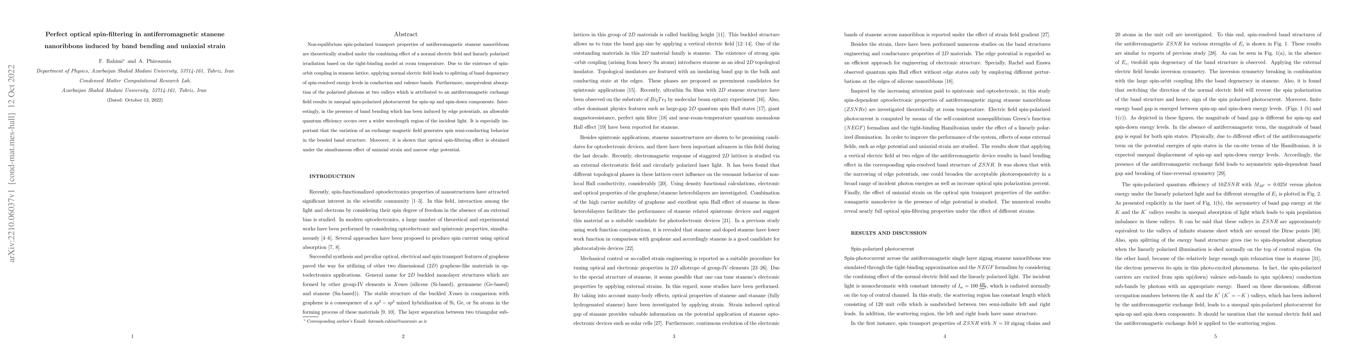 This paper investigates the spin-polarized transport in antiferromagnetic stanene nanoribbons, revealing that band bending and uniaxial strain induce perfect optical spin-filtering. The study finds that a combination of electric fields and polarized irradiation enhances spin-dependent photocurrents, leading to spin semi-conducting behavior.