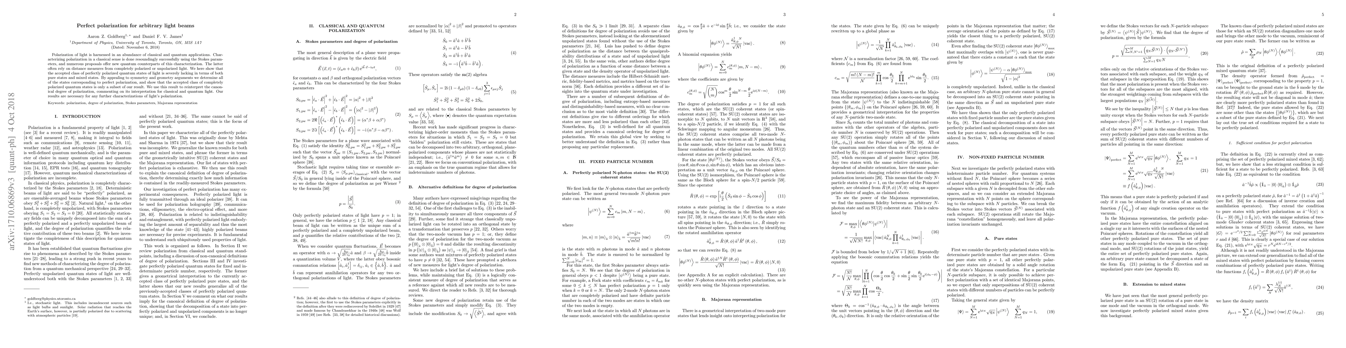 Polarization of light is harnessed in an abundance of classical and quantum applications. Characterizing polarization in a classical sense is done resoundingly successfully using the Stokes parameters, and numerous proposals offer new quantum counterparts of this characterization. The latter often rely on distance measures from completely polarized or unpolarized light. We here show that the accepted class of perfectly polarized quantum states of light is severely lacking in terms of both pure states and mixed states. By appealing to symmetry and geometry arguments we determine all of the states corresponding to perfect polarization, and show that the accepted class of completely polarized quantum states is only a subset of our result. We use this result to reinterpret the canonical degree of polarization, commenting on its interpretation for classical and quantum light. Our results are necessary for any further characterizations of light's polarization.
