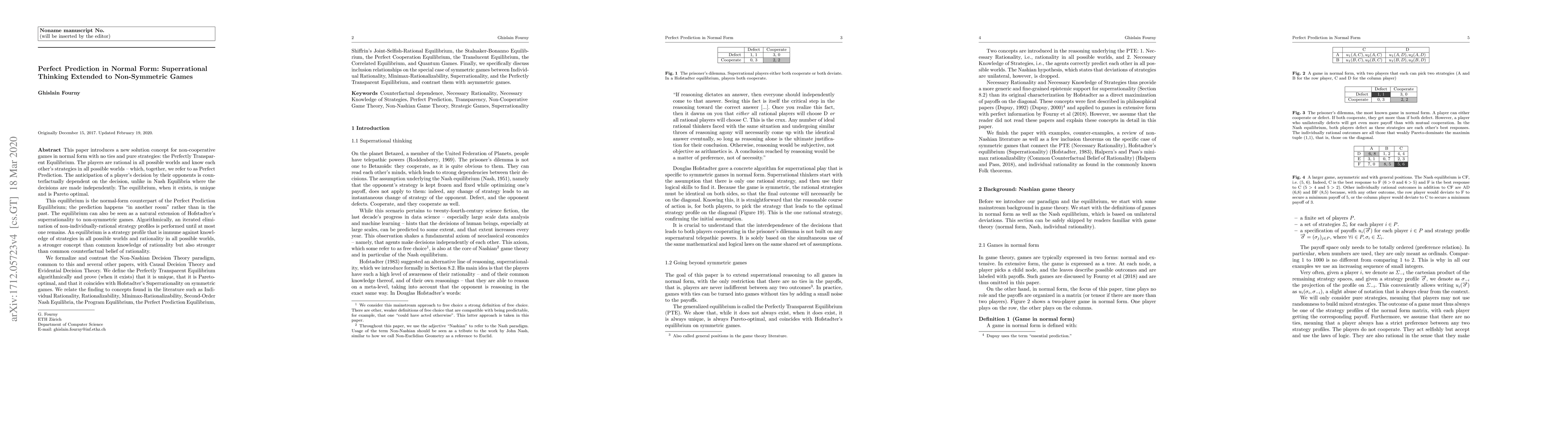 This paper introduces a new solution concept for non-cooperative games in normal form with no ties and pure strategies: the Perfectly Transparent Equilibrium. The players are rational in all possible worlds and know each other's strategies in all possible worlds, which together we refer to as Perfect Prediction. The anticipation of a player's decision by their opponents is counterfactually dependent on the decision, unlike in Nash Equilibra where the decisions are made independently. The equilibrium, when it exists, is unique and is Pareto optimal. This equilibrium is the normal-form counterpart of the Perfect Prediction Equilibrium; the prediction happens "in another room" rather than in the past. The equilibrium can also be seen as a natural extension of Hofstadter's superrationality to non-symmetric games. Algorithmically, an iterated elimination of non-individually-rational strategy profiles is performed until at most one remains. An equilibrium is a strategy profile that is immune against knowledge of strategies in all possible worlds and rationality in all possible worlds, a stronger concept than common knowledge of rationality but also than common counterfactual belief of rationality. We formalize and contrast the Non-Nashian Decision Theory paradigm, common to this and several other papers, with Causal Decision Theory and Evidential Decision Theory. We define the Perfectly Transparent Equilibrium algorithmically and, when it exists, prove its uniqueness, its Pareto-optimality, and that it coincides with the Hofstadter's Superrationality on symmetric games. We also relate to concepts found in literature such as Individual Rationality, Minimax-Rationalizability, the Correlated Equilibrium. Finally, we specifically discuss inclusion relationships on the special case of symmetric games and contrast them with asymmetric games.