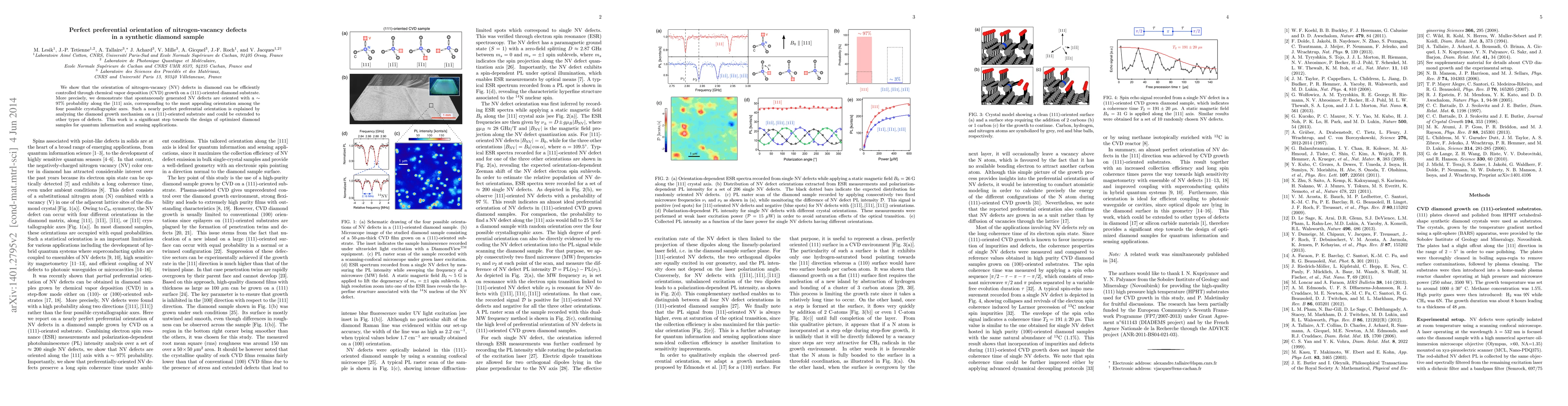 This paper demonstrates a method to control the orientation of nitrogen-vacancy defects in synthetic diamond through CVD growth on a (111)-oriented substrate, achieving nearly perfect preferential orientation along the [111] axis, which is crucial for quantum information and sensing applications. This technique could be extended to other defect types and represents a significant advancement in optimizing diamond samples for these purposes.