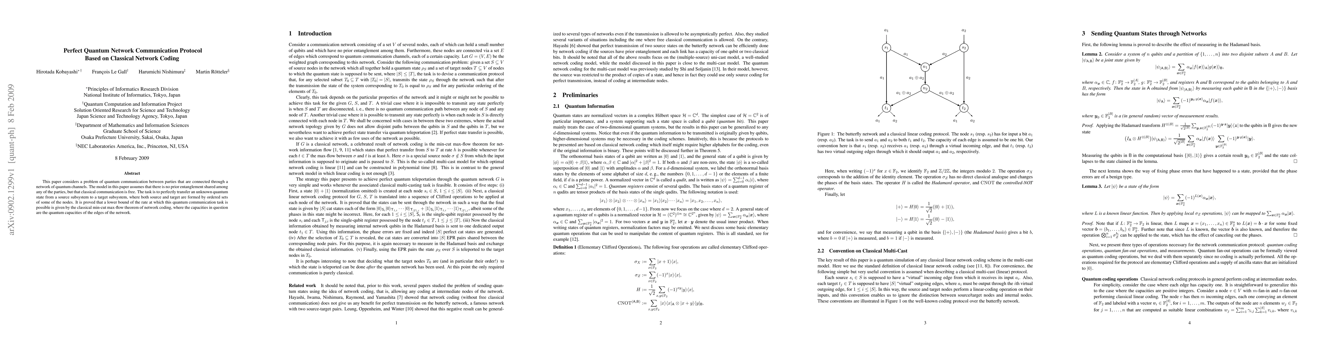 This paper proposes a quantum communication protocol leveraging classical network coding to perfectly transfer an unknown quantum state between nodes in a network. It establishes that the achievable rate is bounded by the classical min-cut max-flow theorem, with the capacities defined by the quantum capacities of the network edges.