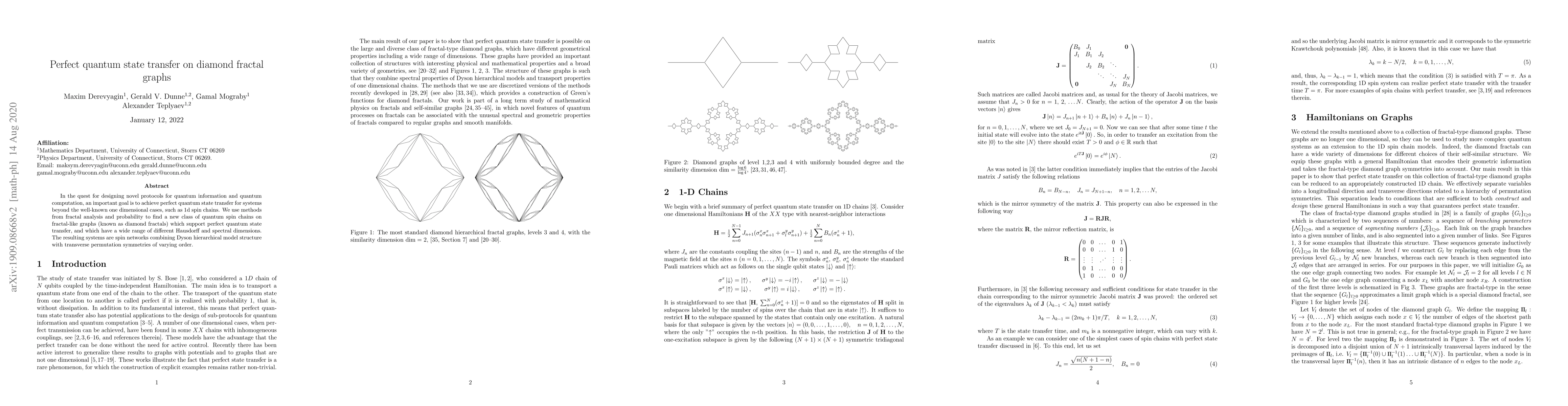This paper introduces a new class of quantum spin chains on diamond fractal graphs that enable perfect quantum state transfer, leveraging fractal analysis and probability theory. These spin networks combine Dyson hierarchical models with varying transverse permutation symmetries, offering diverse Hausdorff and spectral dimensions.