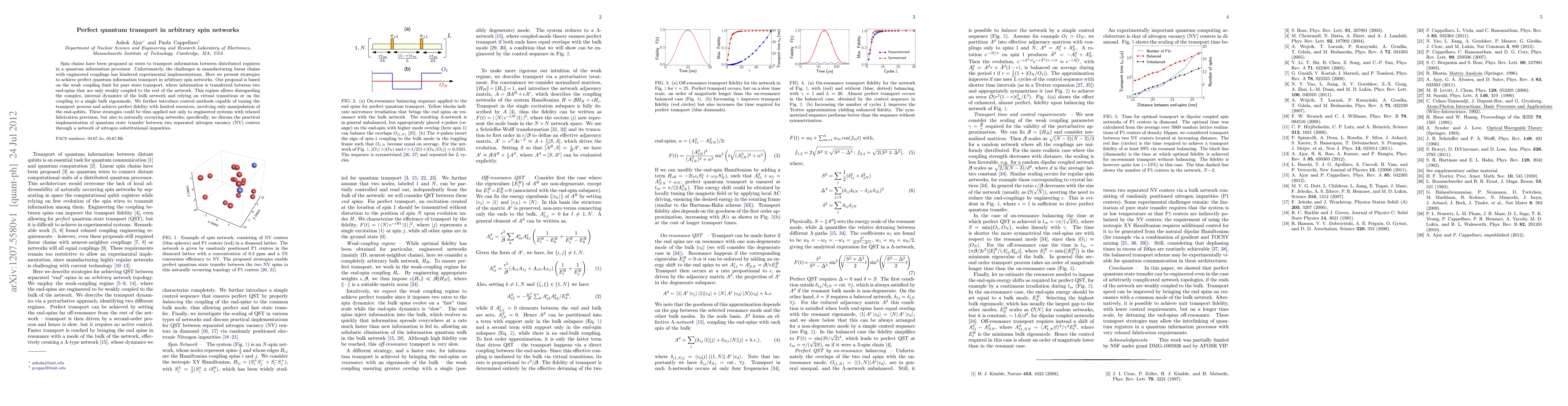 This paper proposes strategies for achieving perfect quantum information transport in arbitrary spin networks by focusing on the weak coupling limit, which simplifies the dynamics and allows for perfect fidelity through manipulation of end-spins. This approach is applicable to both engineered and naturally occurring spin networks, exemplified by quantum state transfer between nitrogen vacancy centers.