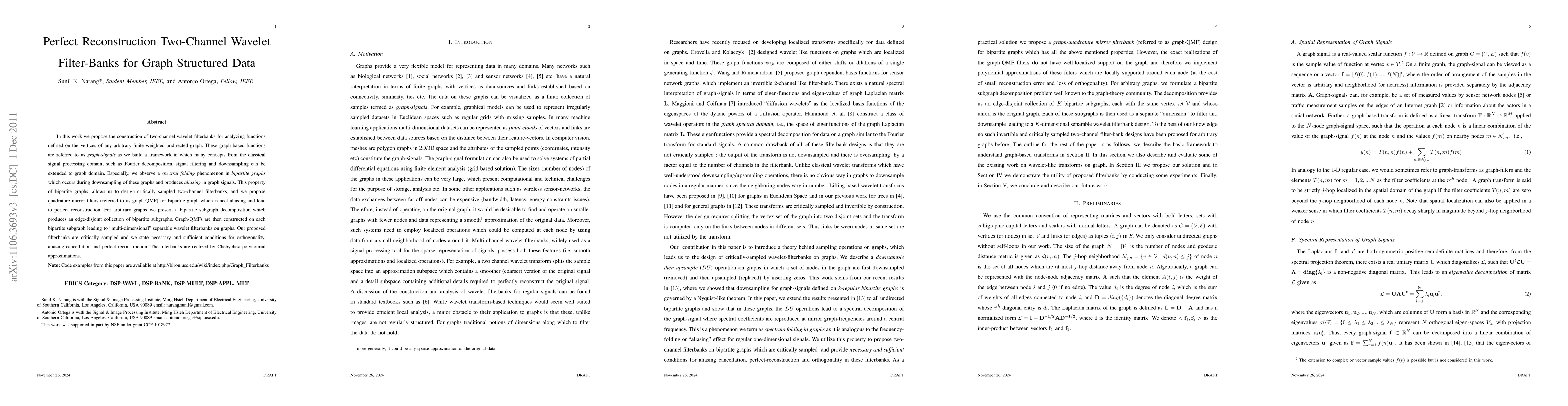 This paper proposes two-channel wavelet filterbanks for analyzing graph-signals on arbitrary finite weighted undirected graphs, addressing spectral folding and aliasing in bipartite graphs. It introduces graph-QMFs for perfect reconstruction and presents a method for constructing separable filterbanks on arbitrary graphs through bipartite subgraph decomposition.