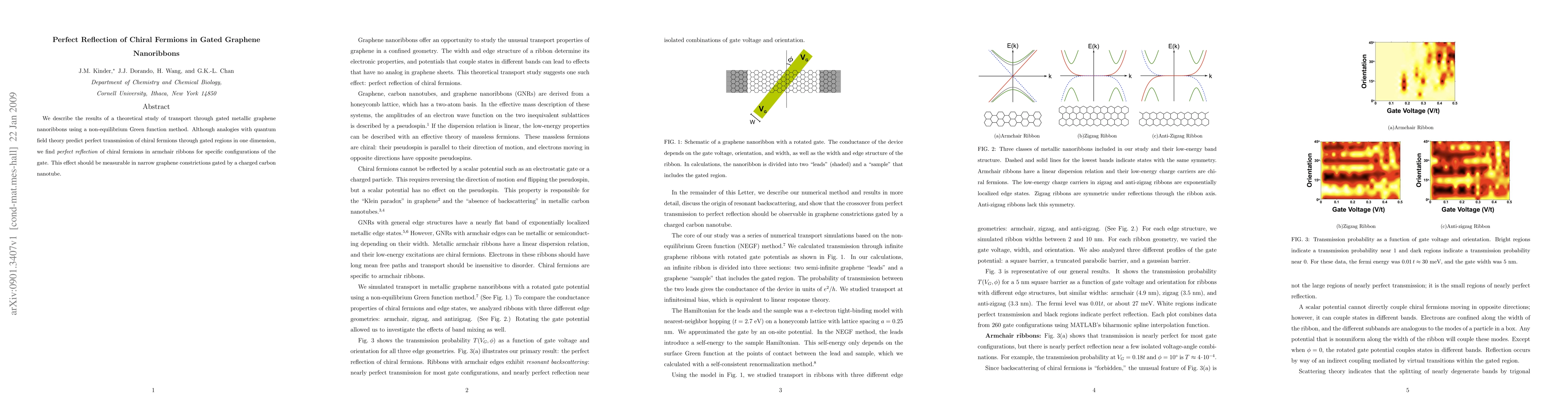 This paper theoretically investigates transport in gated graphene nanoribbons, finding that contrary to predictions, chiral fermions experience perfect reflection in armchair ribbons under specific gate configurations, a phenomenon potentially observable in graphene constrictions gated by a carbon nanotube.