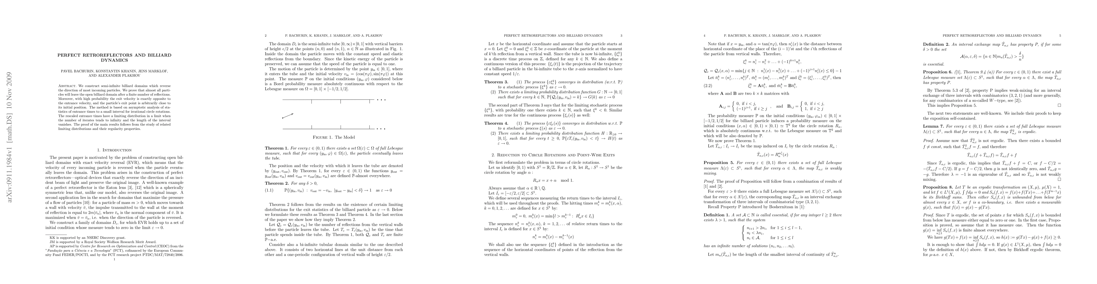 We construct semi-infinite billiard domains which reverse the direction of most incoming particles. We prove that almost all particles will leave the open billiard domain after a finite number of reflections. Moreover, with high probability the exit velocity is exactly opposite to the entrance velocity, and the particle's exit point is arbitrarily close to its initial position. The method is based on asymptotic analysis of statistics of entrance times to a small interval for irrational circle rotations. The rescaled entrance times have a limiting distribution in a limit when the number of iterates tends to infinity and the length of the interval vanishes. The proof of the main results follows from the study of related limiting distributions and their regularity properties.