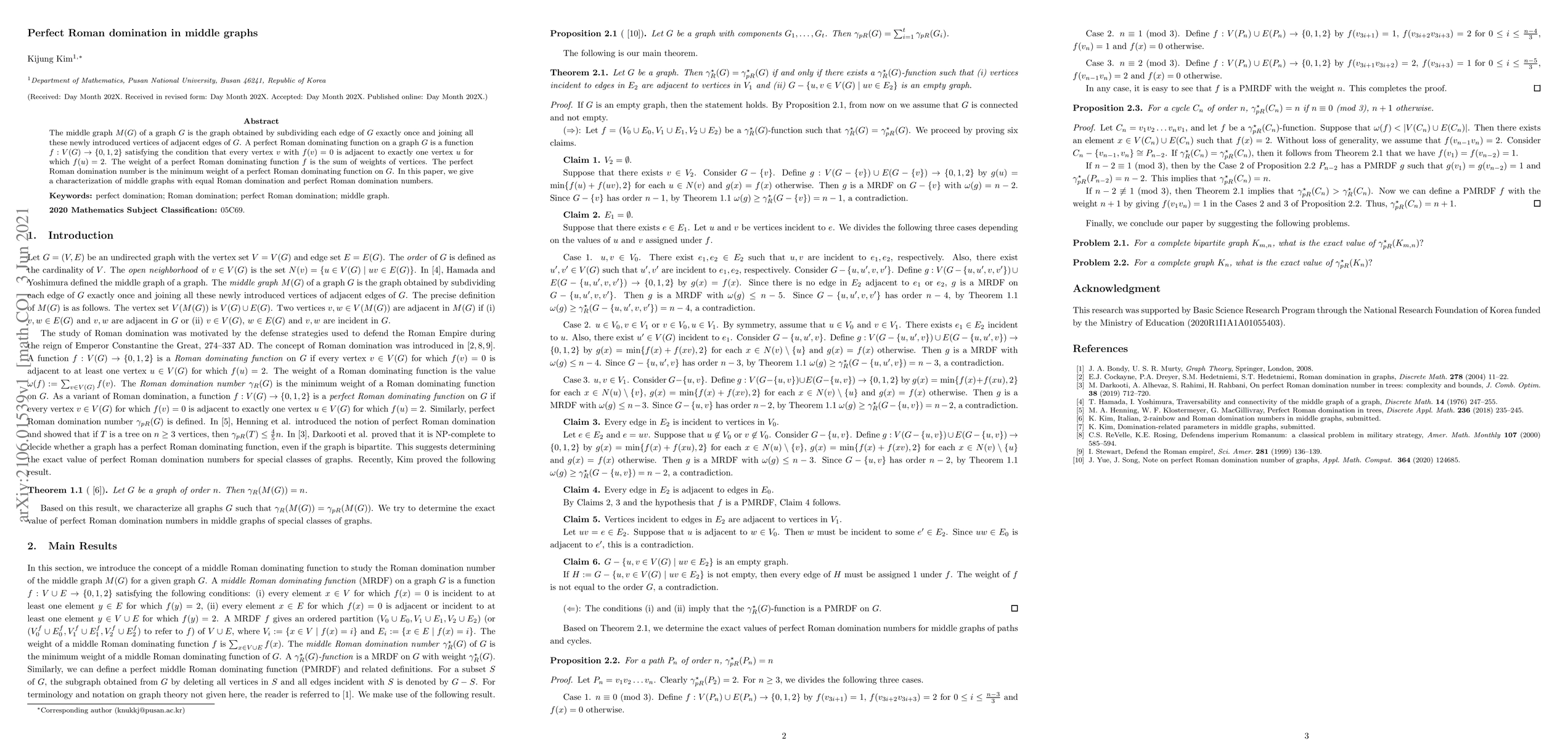 The paper introduces the concept of middle Romandominating functions (MRDF) and perfect middle Romandominating functions (PMRDF) to study the Romandomination number of the middle graph M(G) for a given graph G. It utilizes existing results and propositions from graph theory literature.