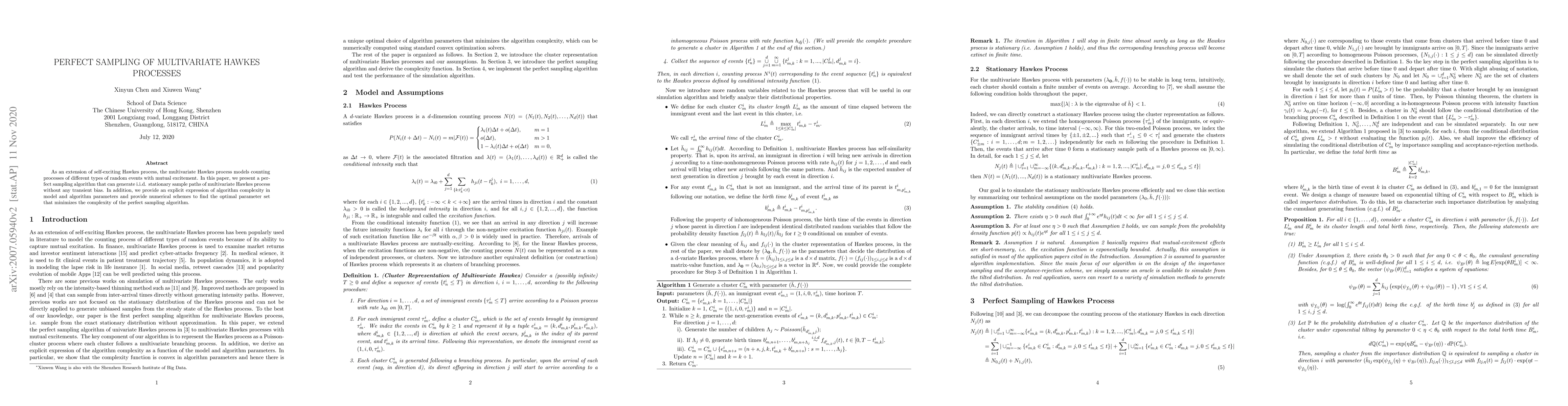 This paper introduces a perfect sampling algorithm for generating unbiased, independent, and identically distributed sample paths of multivariate Hawkes processes, and provides an explicit expression for its complexity along with numerical methods to optimize the algorithm parameters.