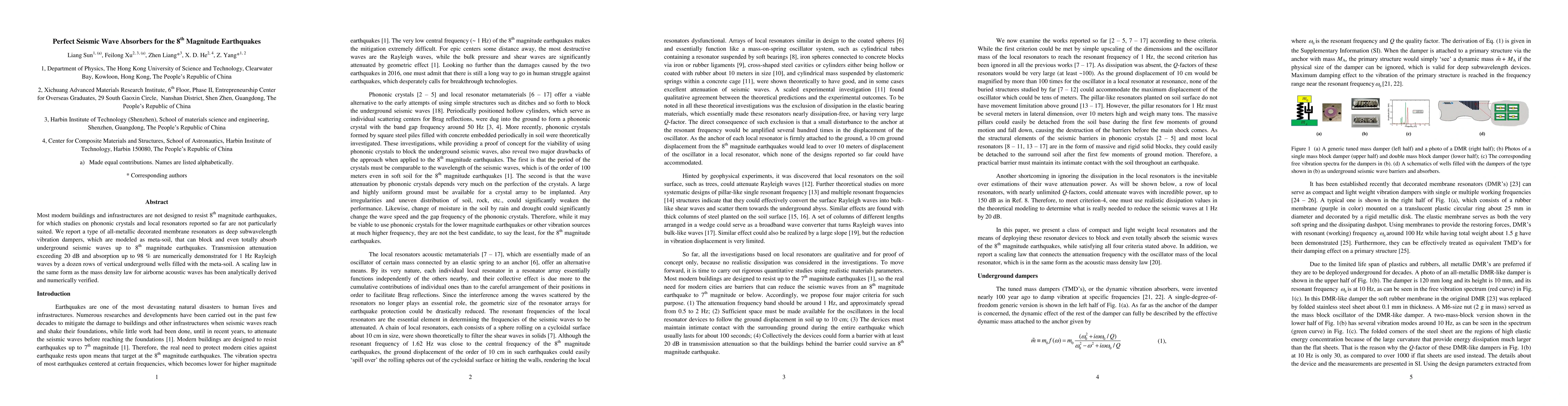 Most modern buildings and infrastructures are not designed to resist 8th magnitude earthquakes, for which studies on phononic crystals and local resonators reported so far are not particularly suited. We report a type of all-metallic decorated membrane resonators as deep subwavelength vibration dampers, which are modeled as meta-soil, that can block and even totally absorb underground seismic waves up to 8th magnitude earthquakes. Transmission attenuation exceeding 20 dB and absorption up to 98 % are numerically demonstrated for 1 Hz Rayleigh waves by a dozen rows of vertical underground wells filled with the meta-soil. A scaling law in the same form as the mass density law for airborne acoustic waves has been analytically derived and numerically verified.