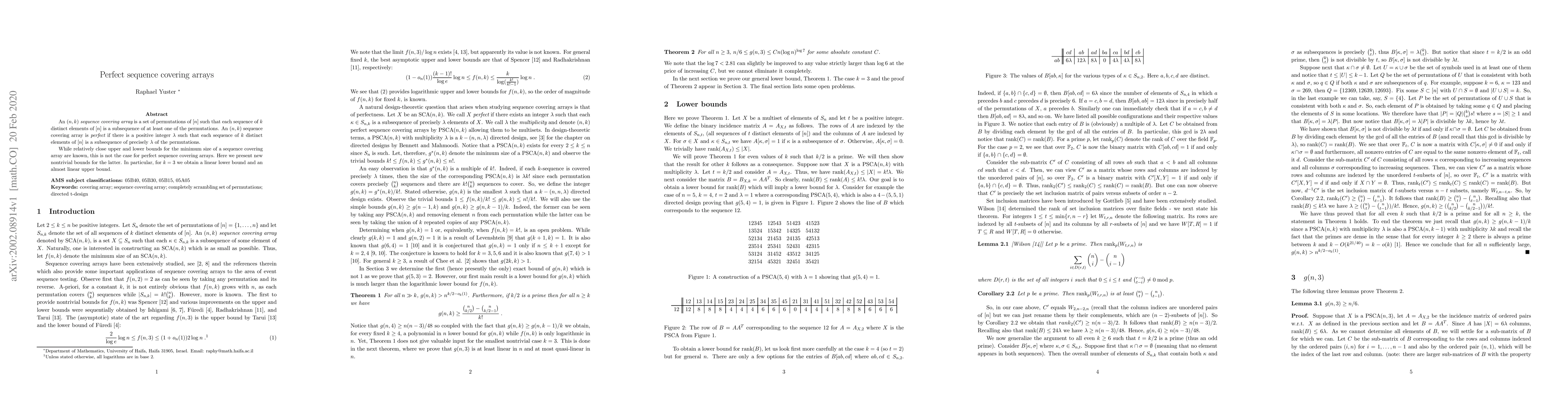 This paper investigates perfect sequence covering arrays, which ensure each sequence of $k$ distinct elements appears as a subsequence in exactly $\lambda$ permutations. New nontrivial bounds for perfect sequence covering arrays are presented, notably a linear lower bound and an almost linear upper bound for $k=3$.