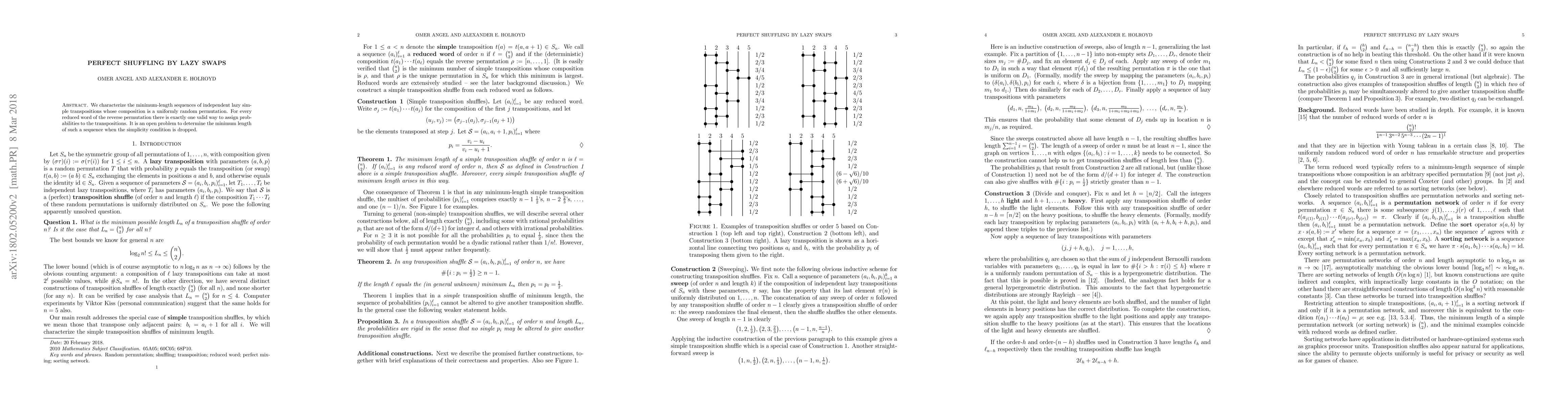 The paper presents an inductive construction of sweeps to generalize a previous example, ensuring that the probability of any element ending up in position n is mj/n for sets Dj. It also discusses three constructions (Constructive 1, 2, and 3) for shuffling sequences using lazy transpositions, aiming to achieve a uniformly random permutation with minimum length.