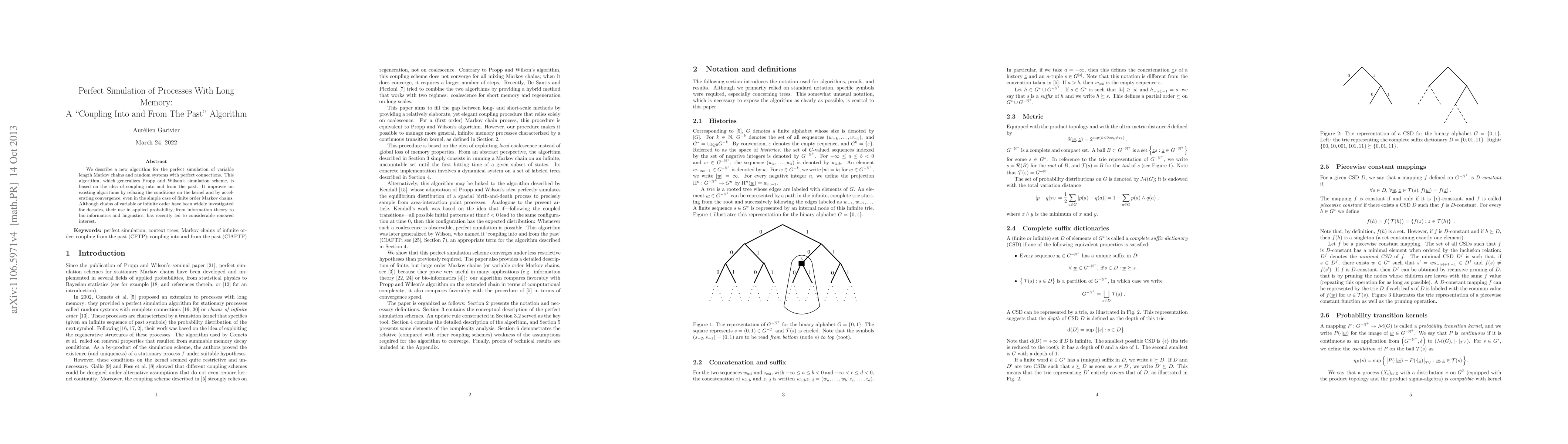 This paper introduces a novel algorithm for perfect simulation of Markov chains and random systems with long memory, based on "coupling into and from the past." It enhances existing methods by relaxing kernel conditions and accelerating convergence, even for finite order Markov chains.