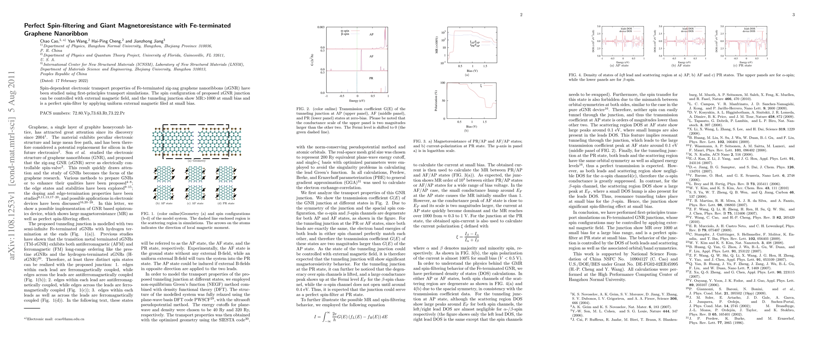 Spin-dependent electronic transport properties of Fe-terminated zig-zag graphene nanoribbons (zGNR) have been studied using first-principles transport simulations. The spin configuration of proposed zGNR junction can be controlled with external magnetic field, and the tunneling junction show MR>1000 at small bias and is a perfect spin-filter by applying uniform external magnetic filed at small bias.