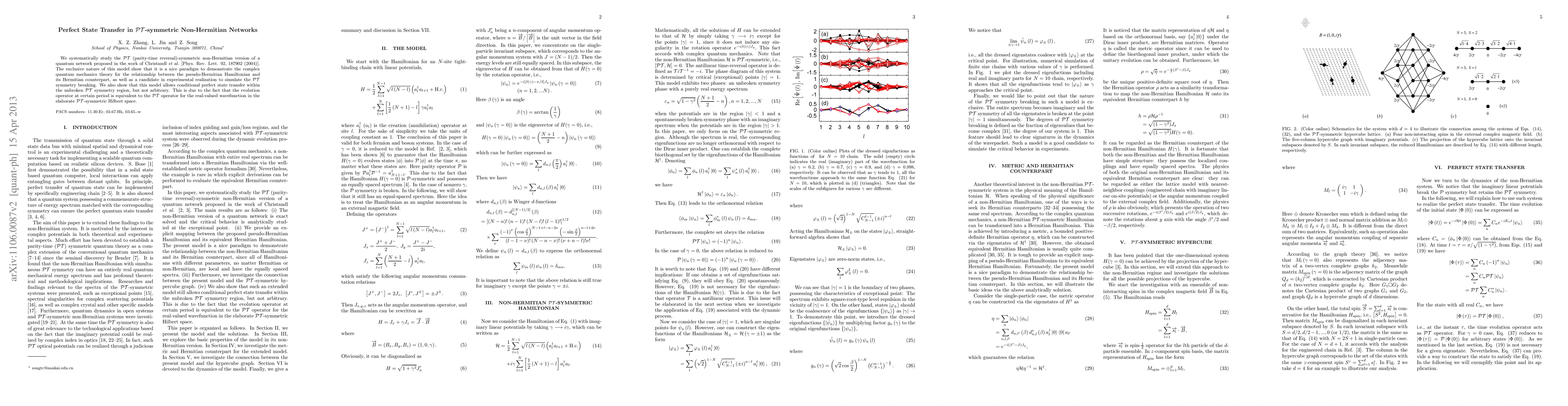 Researchers studied a quantum network model that demonstrates complex relationships between pseudo-Hermitian Hamiltonians and their Hermitian counterparts. They found that the model enables conditional perfect state transfer within a certain region of PT symmetry.