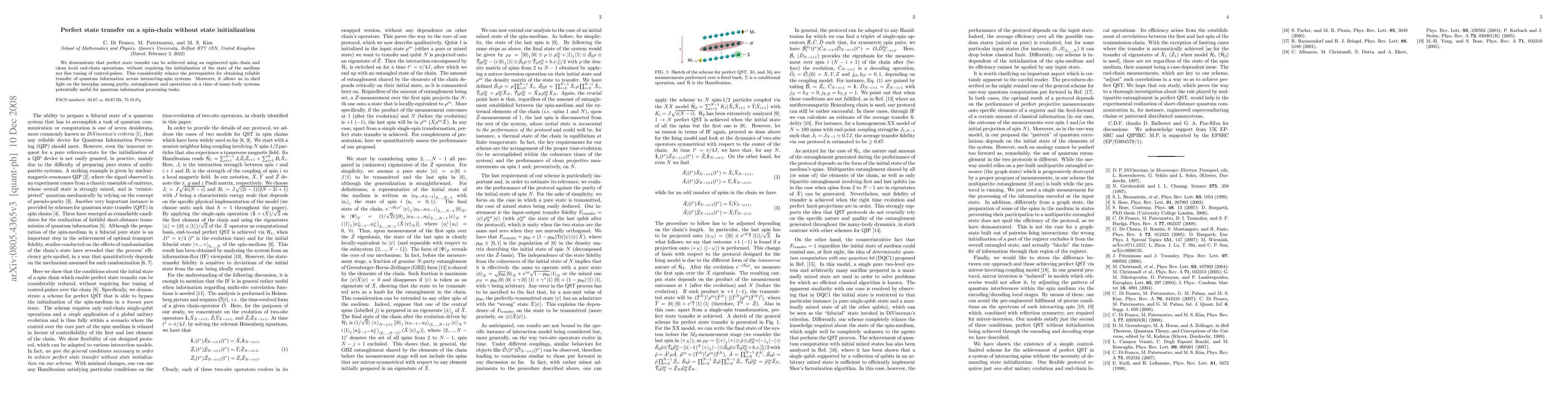 We demonstrate that perfect state transfer can be achieved using an engineered spin chain and clean local end-chain operations, without requiring the initialization of the state of the medium nor fine tuning of control-pulses. This considerably relaxes the prerequisites for obtaining reliable transfer of quantum information across interacting-spin systems. Moreover, it allows us to shed light on the interplay among purity, entanglement and operations on a class of many-body systems potentially useful for quantum information processing tasks.
