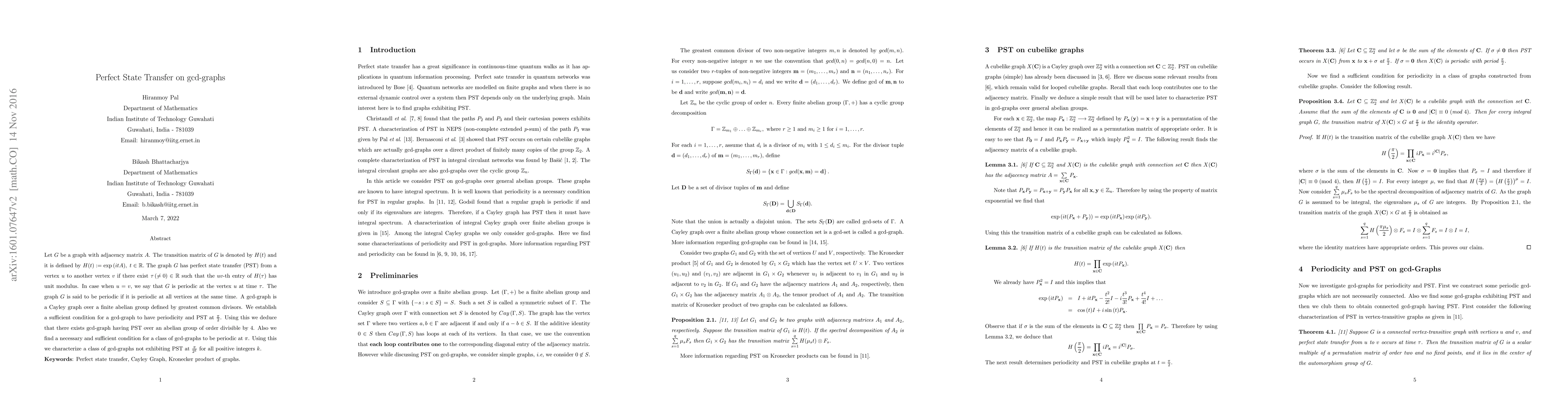 This paper investigates perfect state transfer (PST) on gcd-graphs, establishing sufficient conditions for periodicity and PST at $\frac{\pi}{2}$ and necessary and sufficient conditions for periodicity at $\pi$. It characterizes gcd-graphs with PST over abelian groups divisible by 4 and those not exhibiting PST at $\frac{\pi}{2^k}$ for all positive integers $k$.