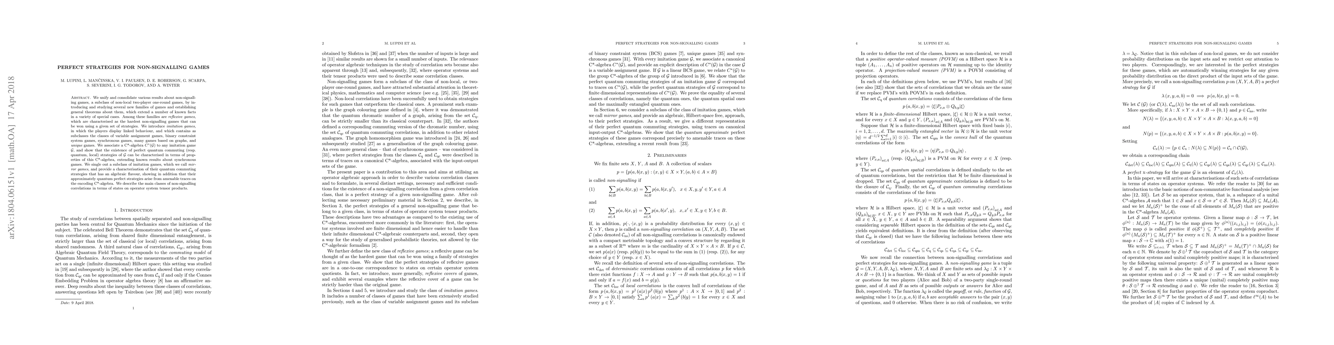 This paper unifies results on non-signalling games, introducing new families like reflexive and imitation games, and establishing theorems about their perfect strategies. It links these games to C*-algebras and provides algebraic characterizations for quantum strategies, particularly for mirror games.