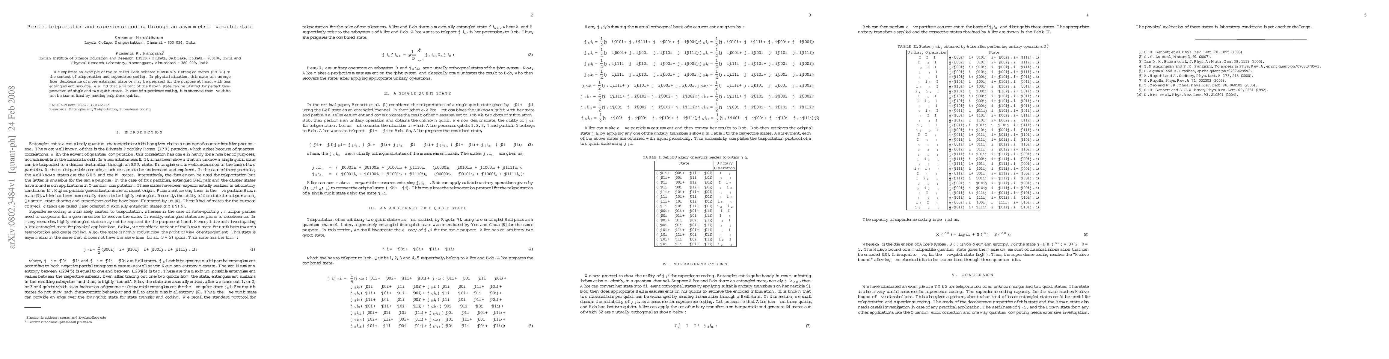This paper explores the use of an asymmetric five-qubit state known as Task oriented Maximally Entangled states (TMES) for perfect teleportation and superdense coding. It demonstrates that a variant of the Brown state can achieve perfect teleportation and allows for the transmission of five classical bits using only three qubits.