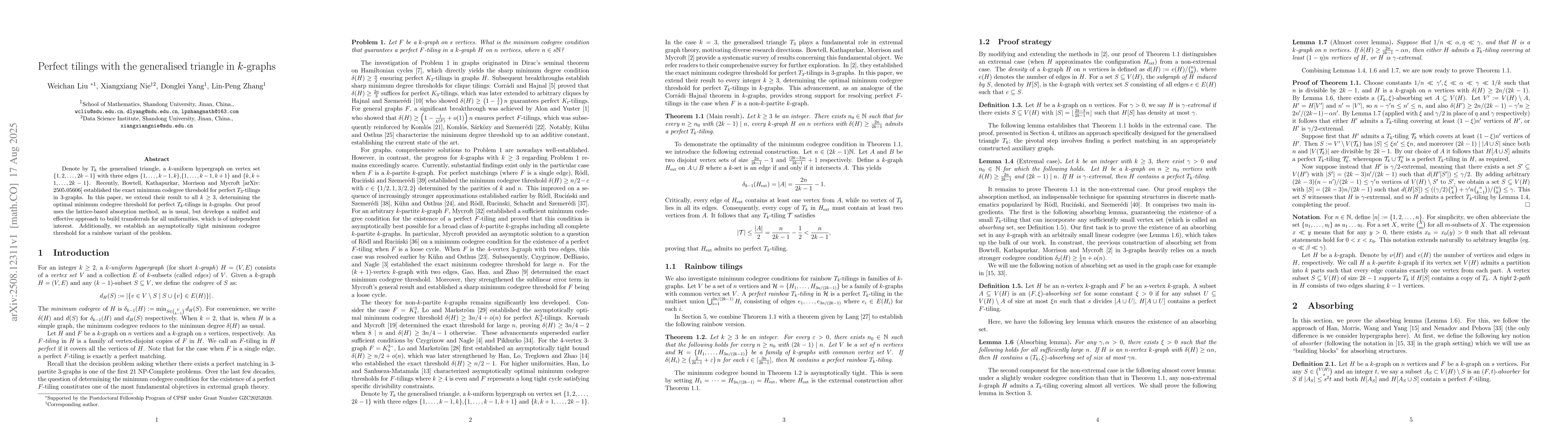 Denote by $T_k$ the generalised triangle, a $k$-uniform hypergraph on vertex set $\{1,2,\dots,2k-1\}$ with three edges $\{1,\dots,k-1,k\}$,$\{1,\dots,k-1,k+1\}$ and $\{k,k+1,\dots,2k-1\}$. Recently, Bowtell, Kathapurkar, Morrison and Mycroft [arXiv: 2505.05606] established the exact minimum codegree threshold for perfect $T_3$-tilings in $3$-graphs. In this paper, we extend their result to all $k \geq 3$, determining the optimal minimum codegree threshold for perfect $T_k$-tilings in $k$-graphs. Our proof uses the lattice-based absorption method, as is usual, but develops a unified and effective approach to build transferrals for all uniformities, which is of independent interest. Additionally, we establish an asymptotically tight minimum codegree threshold for a rainbow variant of the problem.