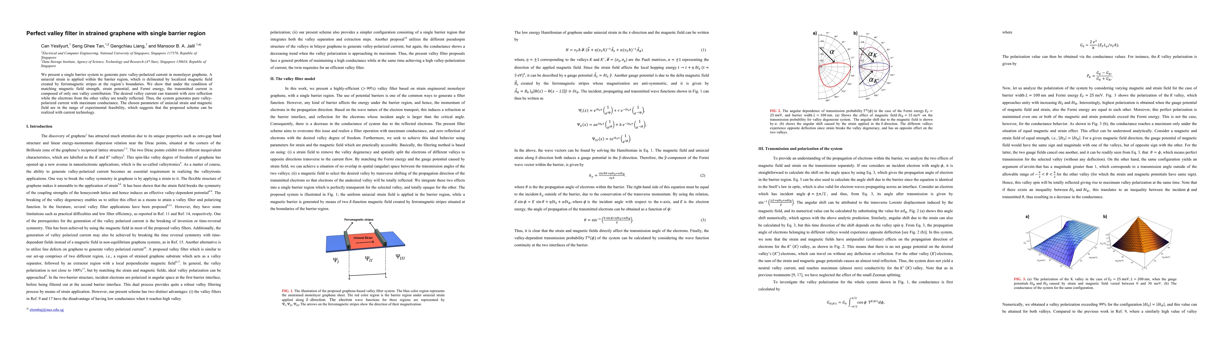 We present a single barrier system to generate pure valley-polarized current in monolayer graphene. A uniaxial strain is applied within the barrier region, which is delineated by localized magnetic field created by ferromagnetic stripes at the regions boundaries. We show that under the condition of matching magnetic field strength, strain potential, and Fermi energy, the transmitted current is composed of only one valley contribution. The desired valley current can transmit with zero reflection while the electrons from the other valley are totally reflected. Thus, the system generates pure valley-polarized current with maximum conductance. The chosen parameters of uniaxial strain and magnetic field are in the range of experimental feasibility, which suggests that the proposed scheme can be realized with current technology.