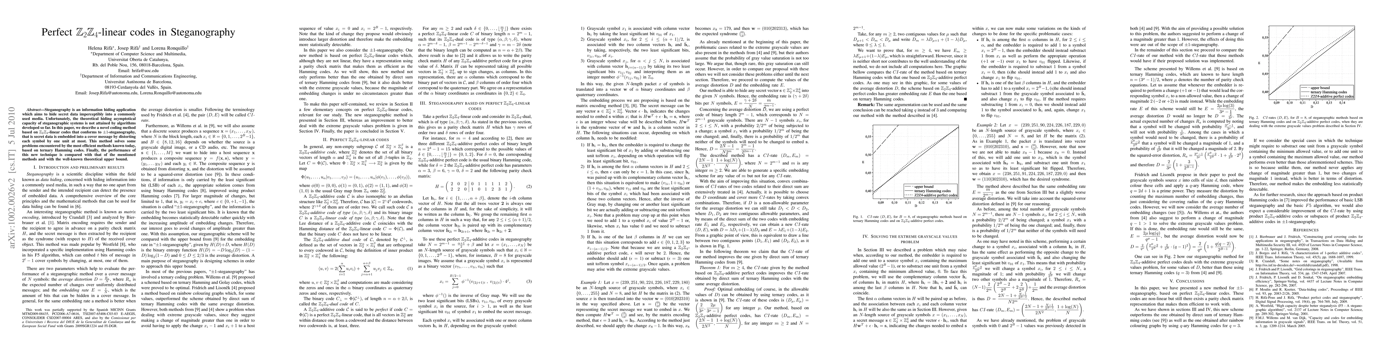The paper describes a novel steganographic method based on perfect Z2Z4-linear codes, which is efficient for +/-1-steganography, addressing issues with ternary Hamming code-based methods.