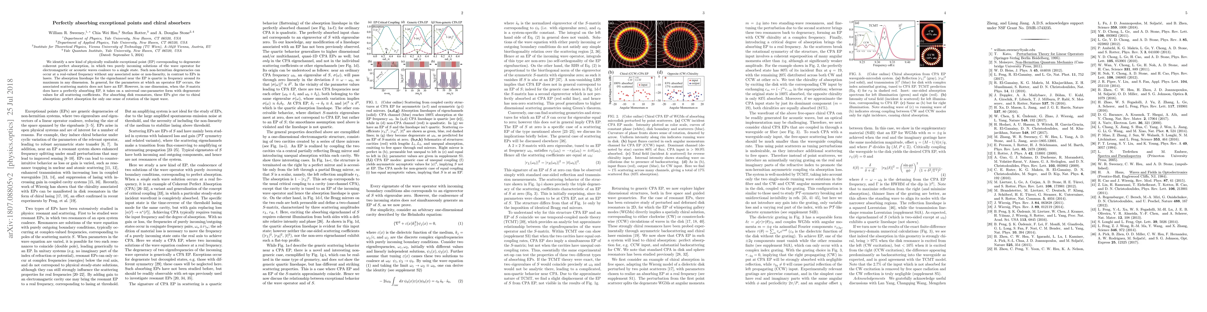 Researchers discover a new type of physically realizable exceptional point in electromagnetic and acoustic waves, enabling perfect absorption without noise or non-linearity. This phenomenon gives rise to chiral absorption, where input waves are absorbed only in one direction of rotation.