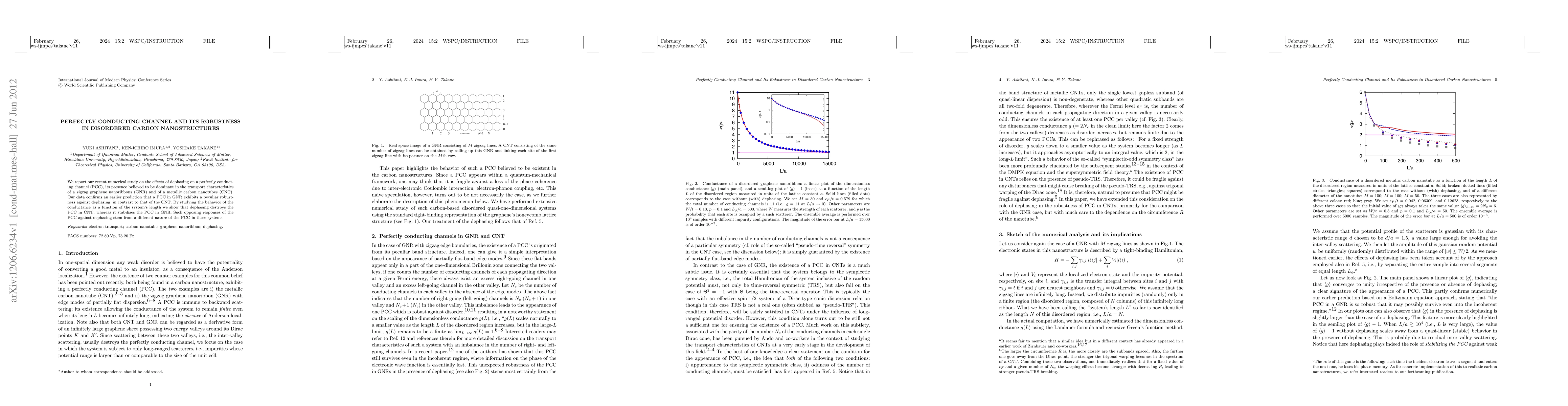 This study investigates the impact of dephasing on the transport properties of a perfectly conducting channel (PCC) in zigzag graphene nanoribbons and metallic carbon nanotubes. The research confirms that while dephasing disrupts the PCC in CNTs, it stabilizes the PCC in GNRs, highlighting a fundamental difference in their robustness against dephasing.