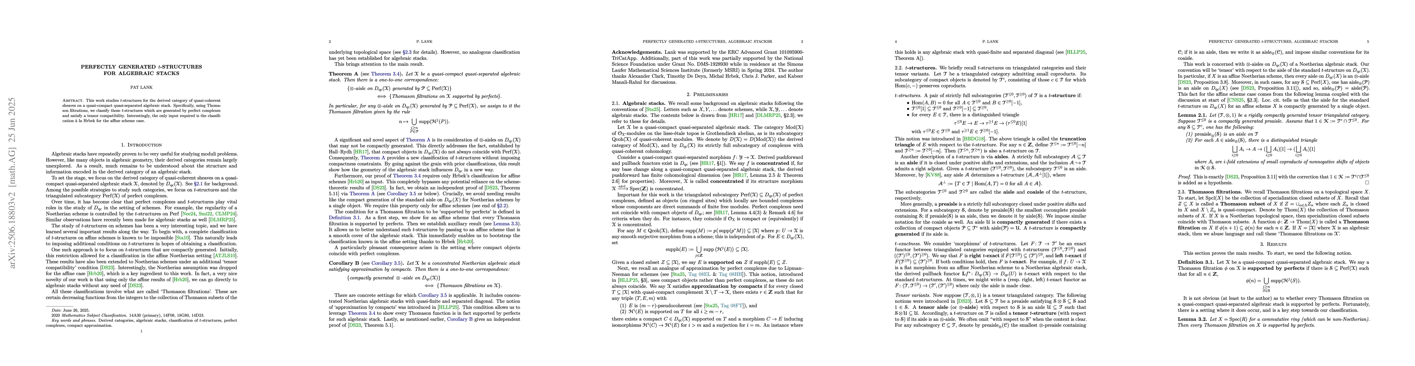 This work studies $t$-structures for the derived category of quasi-coherent sheaves on a quasi-compact quasi-separated algebraic stack. Specifically, using Thomason filtrations, we classify those $t$-structures which are generated by perfect complexes and satisfy a tensor compatibility. Interestingly, the only input required is the classification \`{a} la Hrbek for the affine scheme case.