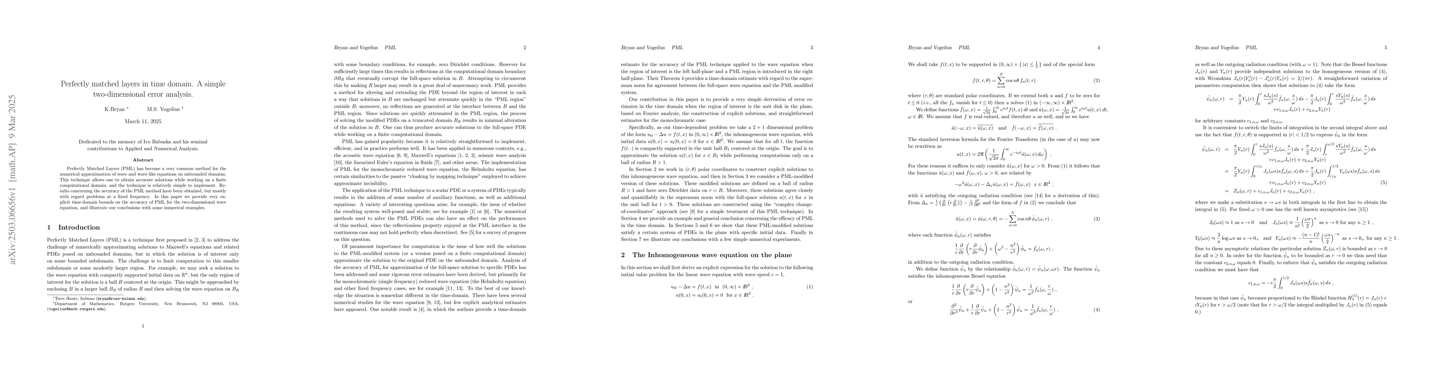 The paper presents a time-domain error analysis for Perfectly Matched Layers (PML) applied to the two-dimensional wave equation, providing explicit bounds on accuracy.