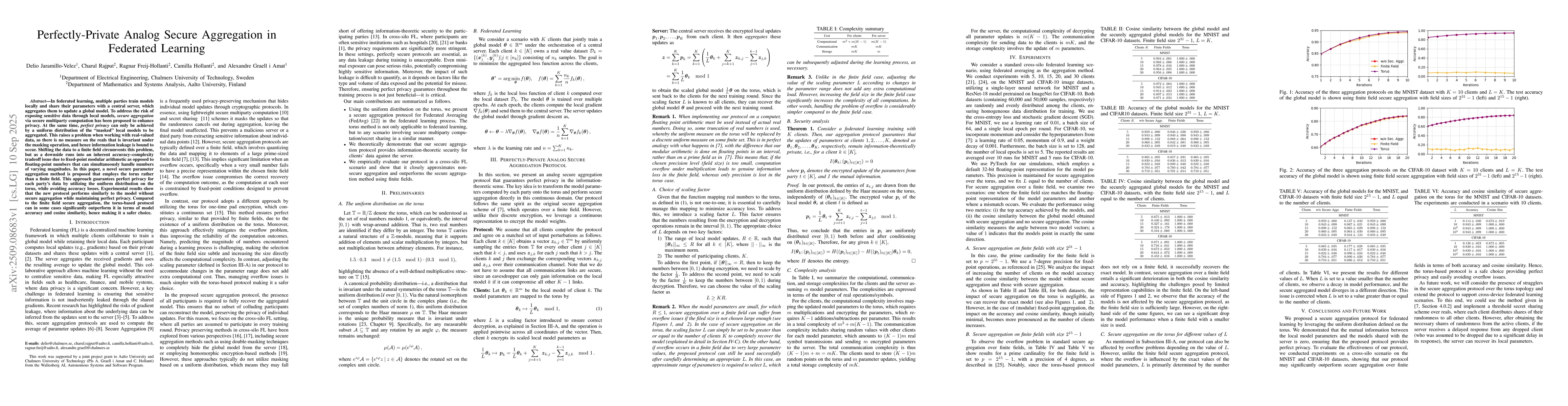 In federated learning, multiple parties train models locally and share their parameters with a central server, which aggregates them to update a global model. To address the risk of exposing sensitive data through local models, secure aggregation via secure multiparty computation has been proposed to enhance privacy. At the same time, perfect privacy can only be achieved by a uniform distribution of the masked local models to be aggregated. This raises a problem when working with real valued data, as there is no measure on the reals that is invariant under the masking operation, and hence information leakage is bound to occur. Shifting the data to a finite field circumvents this problem, but as a downside runs into an inherent accuracy complexity tradeoff issue due to fixed point modular arithmetic as opposed to floating point numbers that can simultaneously handle numbers of varying magnitudes. In this paper, a novel secure parameter aggregation method is proposed that employs the torus rather than a finite field. This approach guarantees perfect privacy for each party's data by utilizing the uniform distribution on the torus, while avoiding accuracy losses. Experimental results show that the new protocol performs similarly to the model without secure aggregation while maintaining perfect privacy. Compared to the finite field secure aggregation, the torus-based protocol can in some cases significantly outperform it in terms of model accuracy and cosine similarity, hence making it a safer choice.