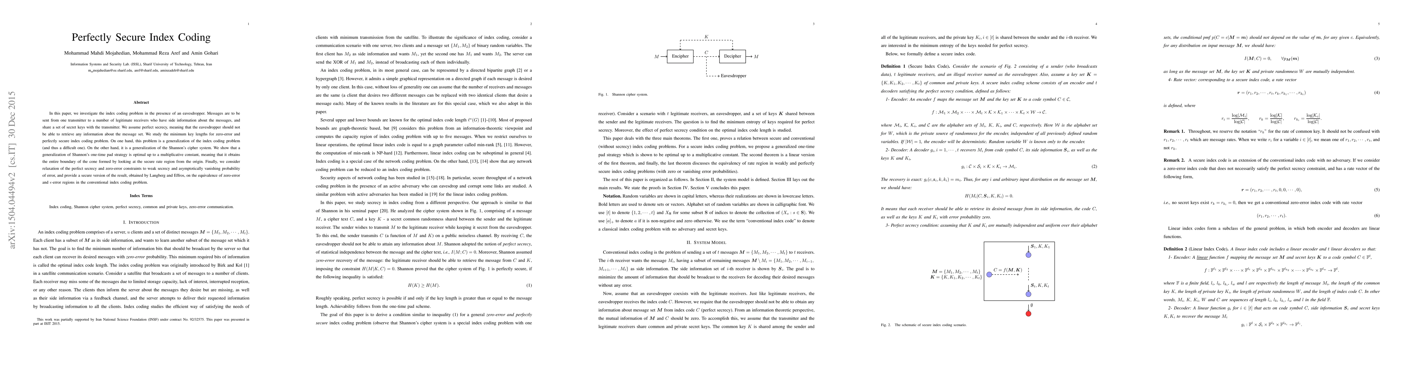 This paper explores the index coding problem with an eavesdropper, focusing on achieving perfect secrecy and determining minimum key lengths for secure communication. It demonstrates that a generalized one-time pad strategy is optimal for secure index coding, and extends results to weak secrecy and vanishing error probabilities.