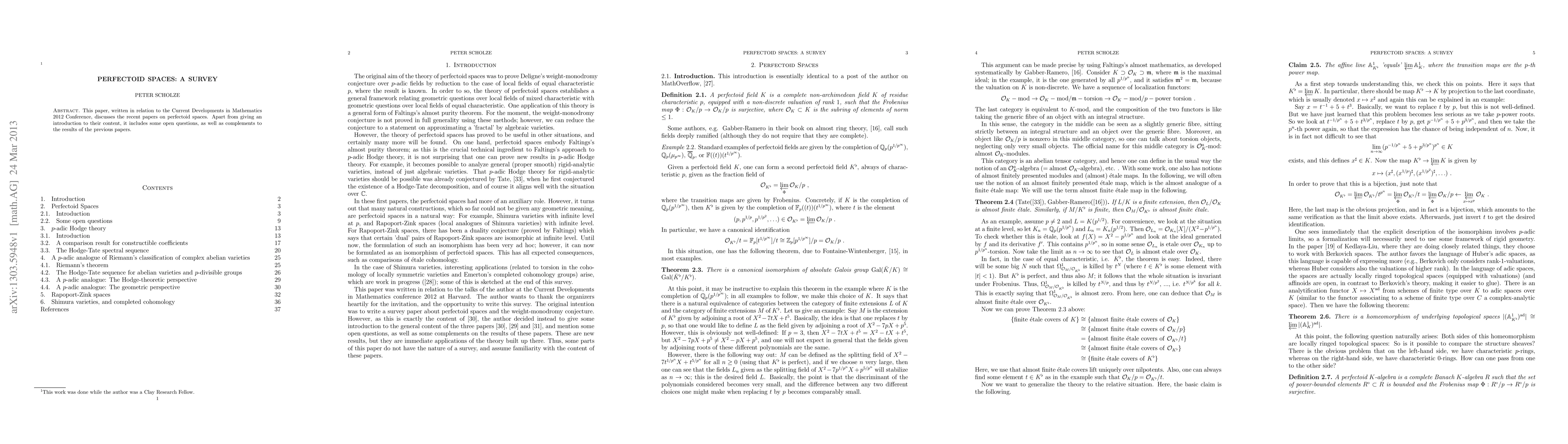 This paper, written in relation to the Current Developments in Mathematics 2012 Conference, discusses the recent papers on perfectoid spaces. Apart from giving an introduction to their content, it includes some open questions, as well as complements to the results of the previous papers.
