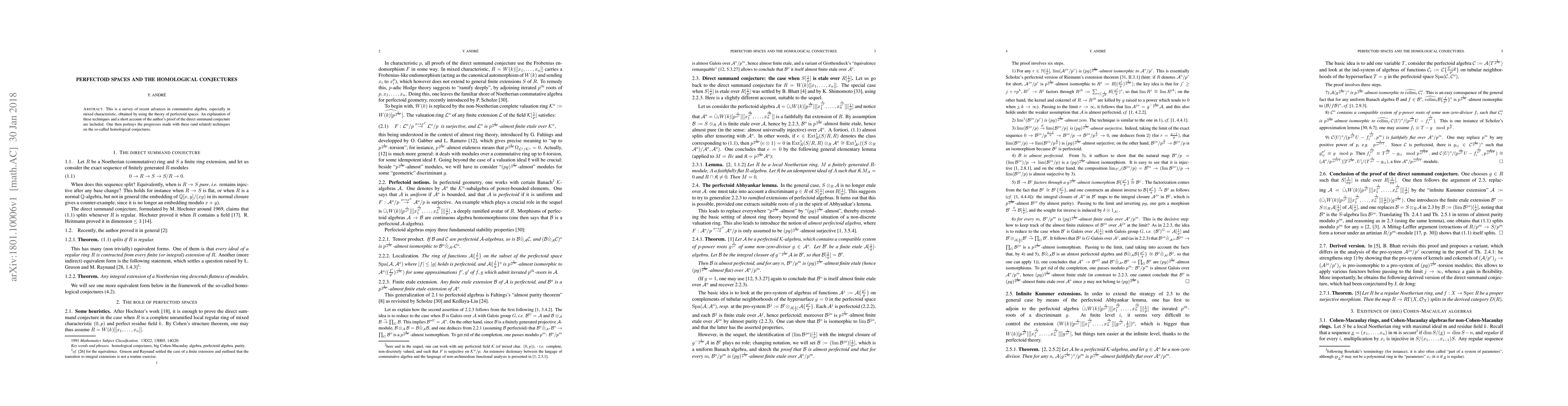 Recent advances in commutative algebra using perfectoid spaces have led to progress on the homological conjectures, including a proof of the direct summand conjecture.