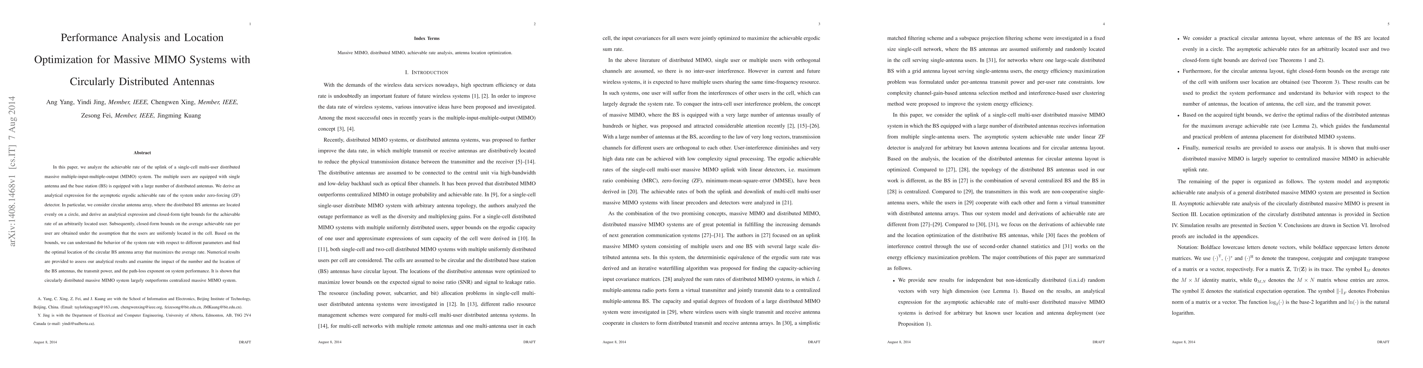 In this paper, we analyze the achievable rate of the uplink of a single-cell multi-user distributed massive multiple-input-multiple-output (MIMO) system. The multiple users are equipped with single antenna and the base station (BS) is equipped with a large number of distributed antennas. We derive an analytical expression for the asymptotic ergodic achievable rate of the system under zero-forcing (ZF) detector. In particular, we consider circular antenna array, where the distributed BS antennas are located evenly on a circle, and derive an analytical expression and closed-form tight bounds for the achievable rate of an arbitrarily located user. Subsequently, closed-form bounds on the average achievable rate per user are obtained under the assumption that the users are uniformly located in the cell. Based on the bounds, we can understand the behavior of the system rate with respect to different parameters and find the optimal location of the circular BS antenna array that maximizes the average rate. Numerical results are provided to assess our analytical results and examine the impact of the number and the location of the BS antennas, the transmit power, and the path-loss exponent on system performance. It is shown that circularly distributed massive MIMO system largely outperforms centralized massive MIMO system.