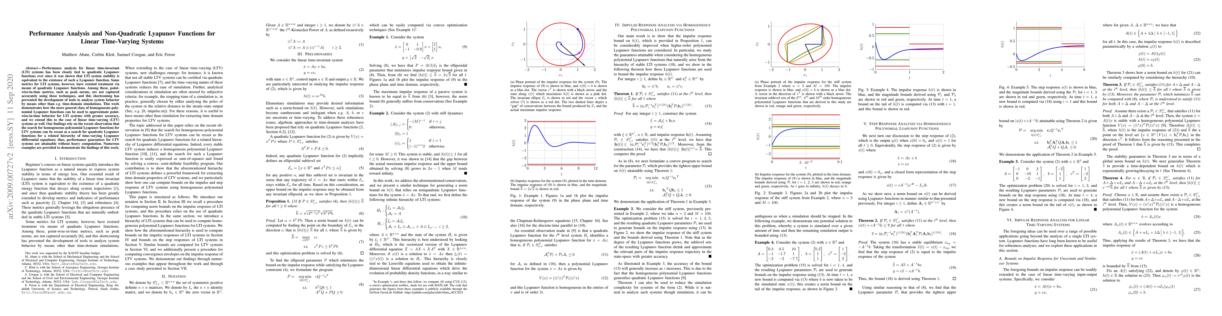 This paper explores the use of non-quadratic Lyapunov functions, specifically homogeneous polynomial functions, to more accurately analyze the performance of linear time-invariant and linear time-varying systems, particularly for point-wise-in-time metrics like peak norms. It demonstrates that these functions can provide better approximations than quadratic Lyapunov functions, enabling more precise performance analysis without extensive computational effort.
