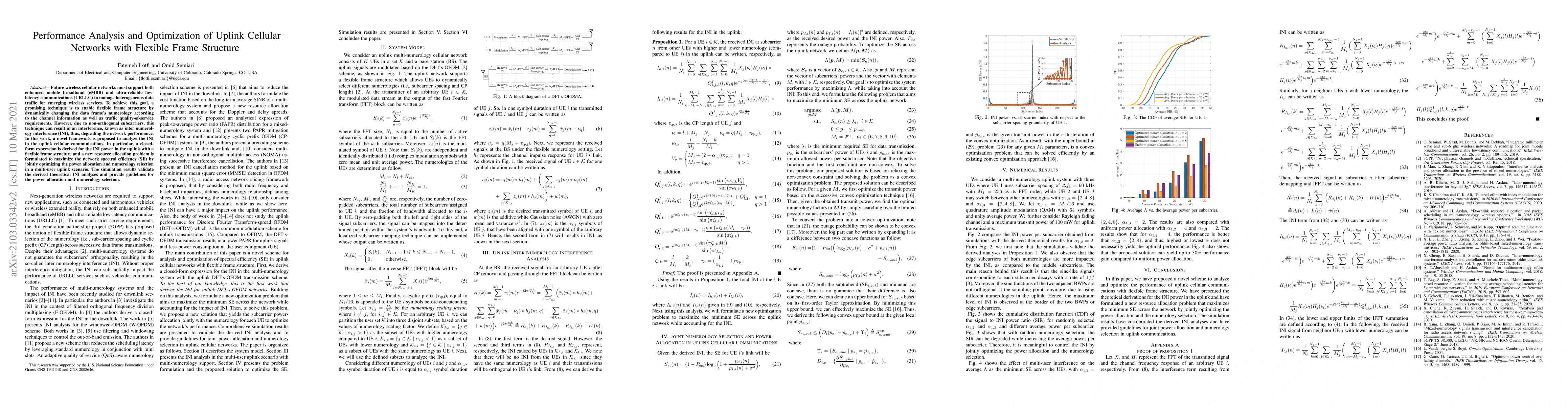 This paper proposes a framework to analyze and optimize inter-numerology interference in uplink cellular networks with flexible frame structures. It derives a closed-form expression for INI power and formulates a new resource allocation problem to maximize network spectral efficiency.
