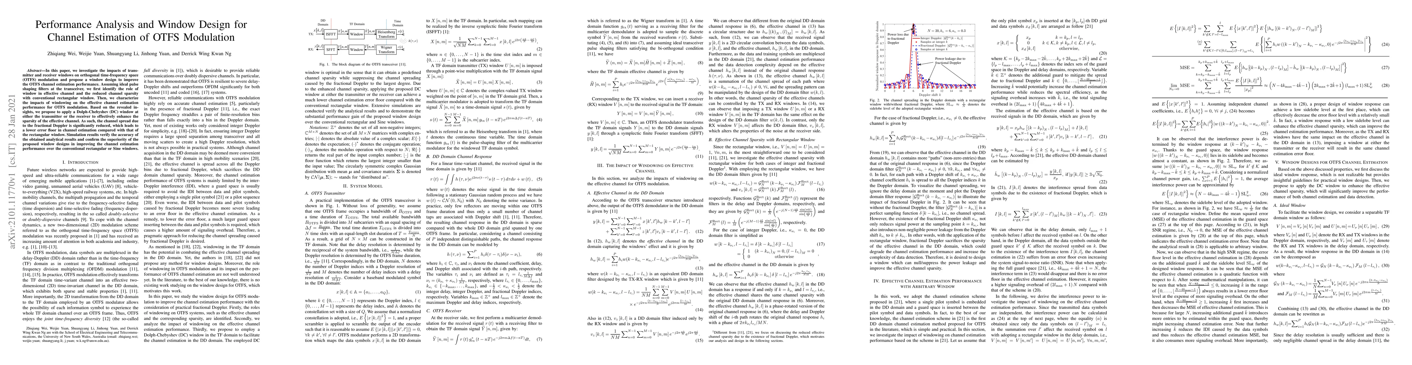 This paper analyzes the effects of transmitter and receiver windows on OTFS modulation and proposes a Dolph-Chebyshev window design to enhance channel estimation performance. The study finds that the proposed window significantly reduces channel spread and error floor compared to conventional rectangular windows, as verified by simulations.
