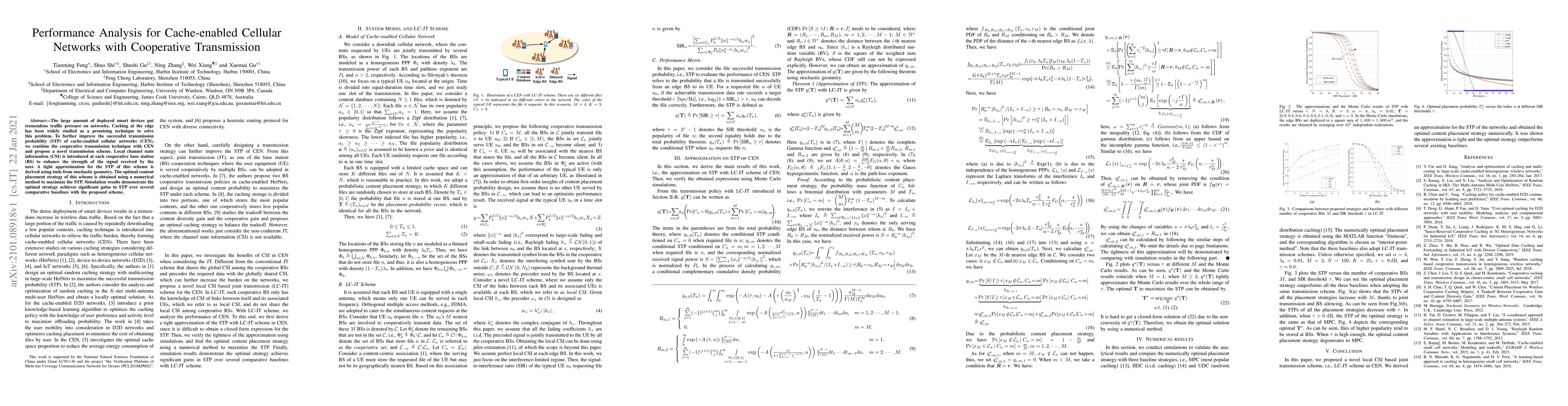 This paper proposes a cooperative transmission scheme for cache-enabled cellular networks to enhance successful transmission probability (STP) by leveraging local channel state information at cooperative base stations. Simulation results show significant improvements in STP compared to baselines, achieved through an optimal content placement strategy.