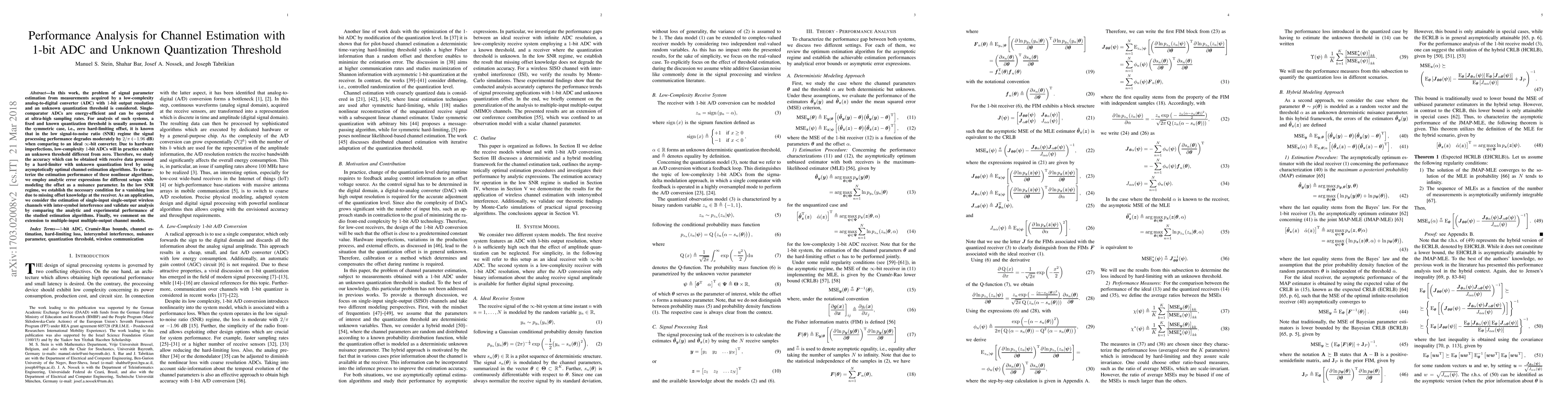 Researchers analyzed channel estimation for 1-bit ADCs with unknown quantization thresholds, finding that asymptotically optimal algorithms can achieve accurate performance even in low SNR regimes.